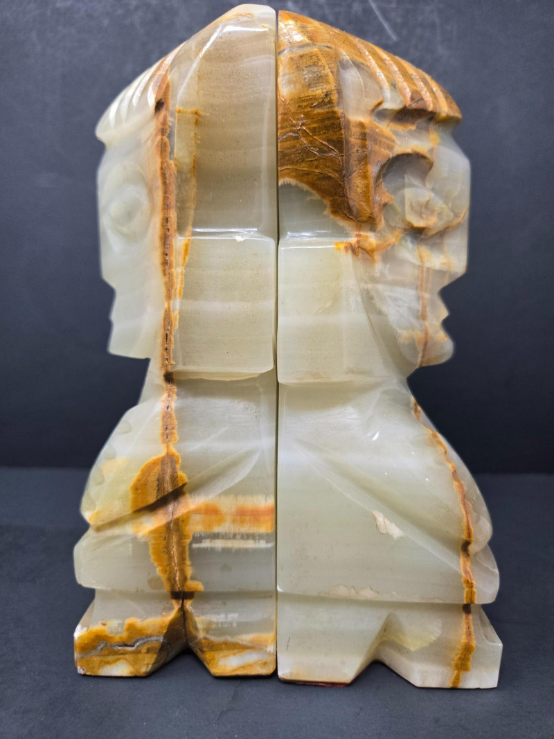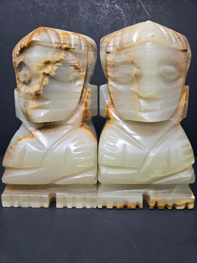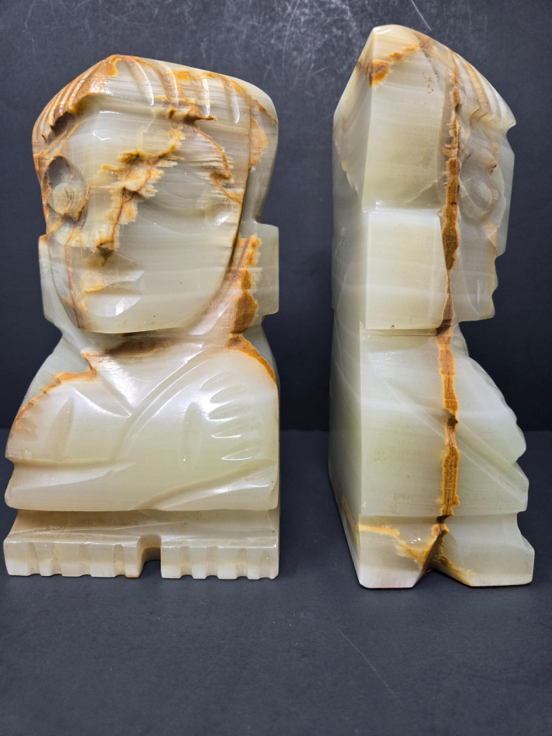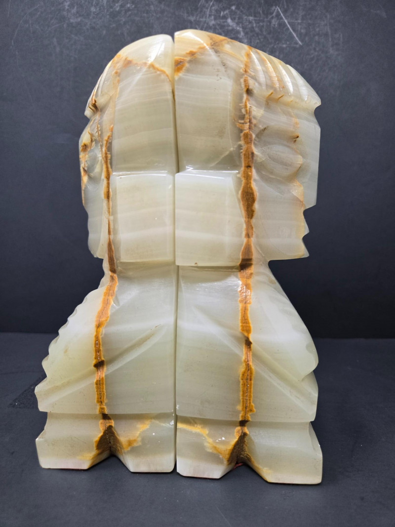 Lot # 29 - Vintage Solid Marble Onyx Mayan Figural Bookends