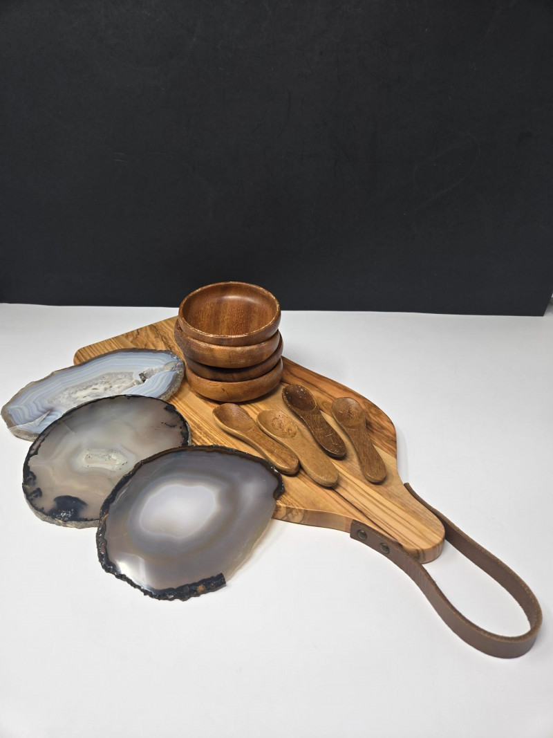 Butcher Block: Wooden Bowls: Wooden Spoons: Agate Coasters: Condition: