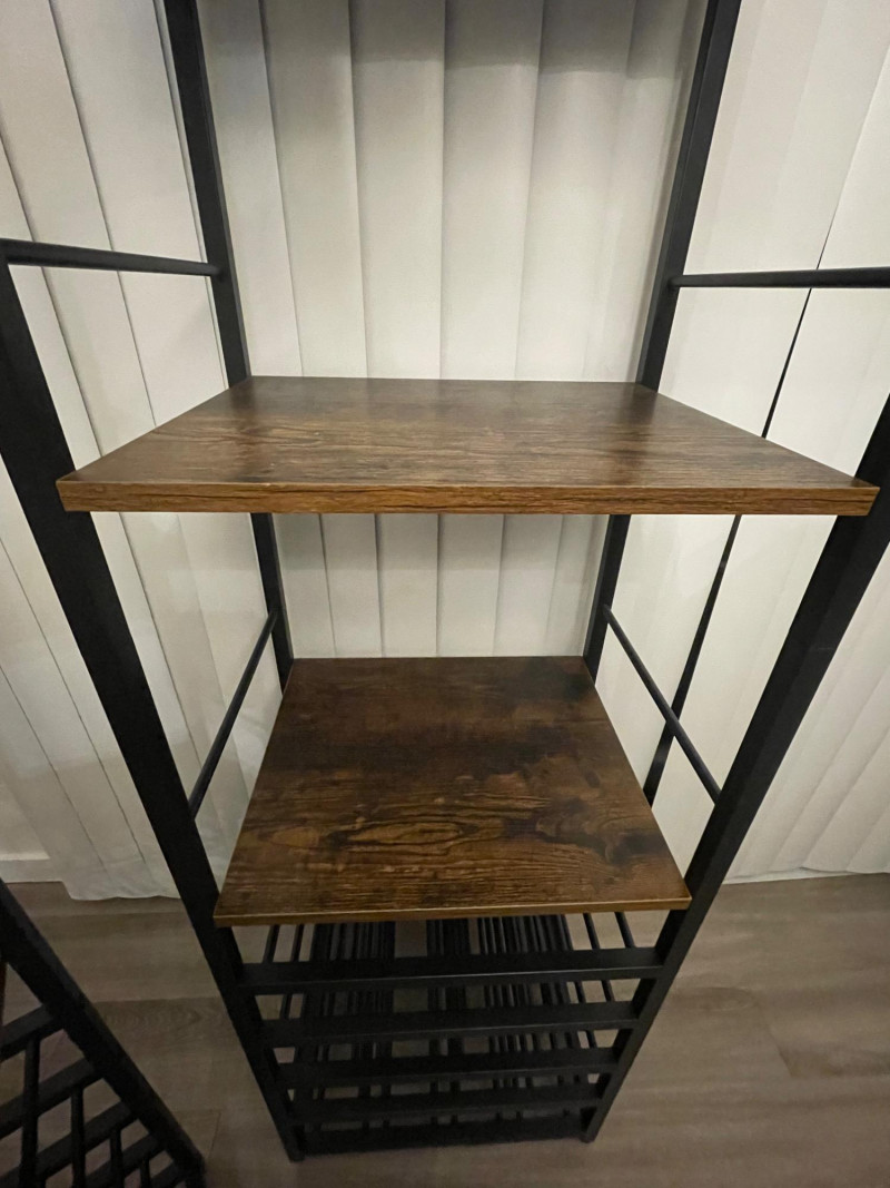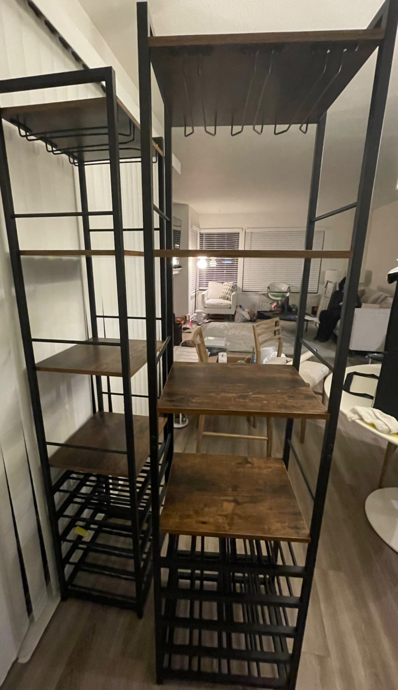 Lot # 36 - Pair of New Black Metal w/Wood Shelves, Industrial Vibe Wine Racks