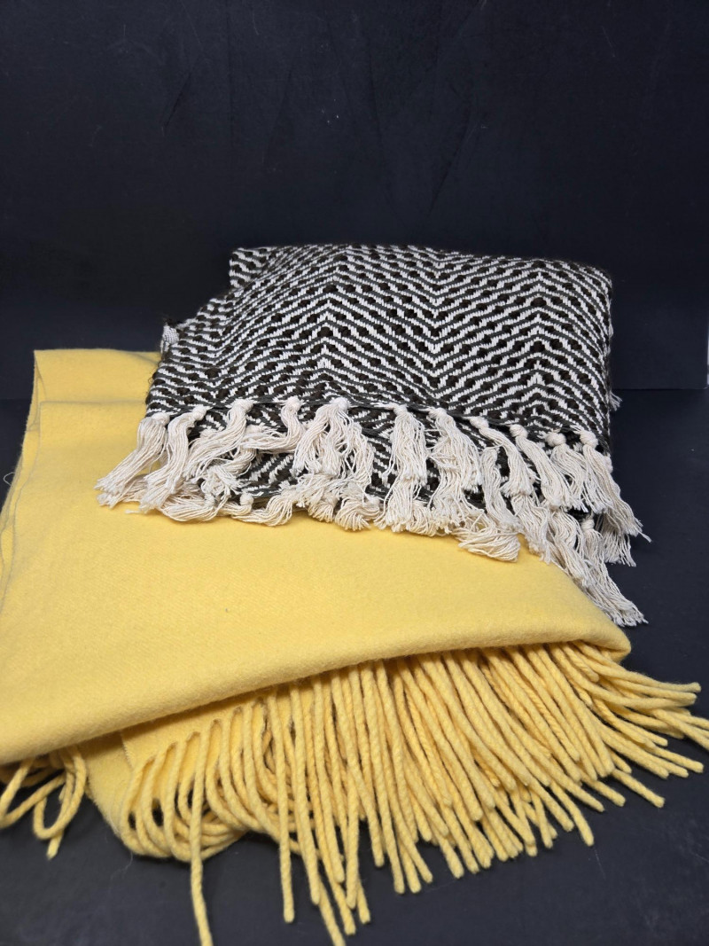 Lot # 37 - Cozy Ellen DeGeneres & Yellow Throw Blankets & Basket