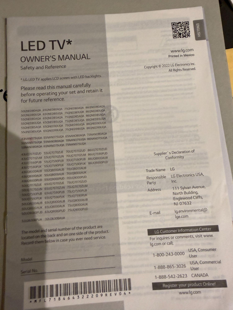 Included: TV unit, remote control, wall bracket Display: Large-format screen ideal for cinematic viewing Sleek black frame with reflective surface Mounted above fireplace—wall bracket included Accessories: LG remote control for full functionality Wall bracket (buyer must bring tools for removal) Pickup Notes: TV and bracket must be removed from wall—bring appropriate tools and assistance No loading help available; some items may be located on second floor or outbuilding 66" LG TV with remote and Wall Bracket. Please come prepare to remove TV and Stand from wall, bring tools 66” LG TV with Remote & Wall Bracket