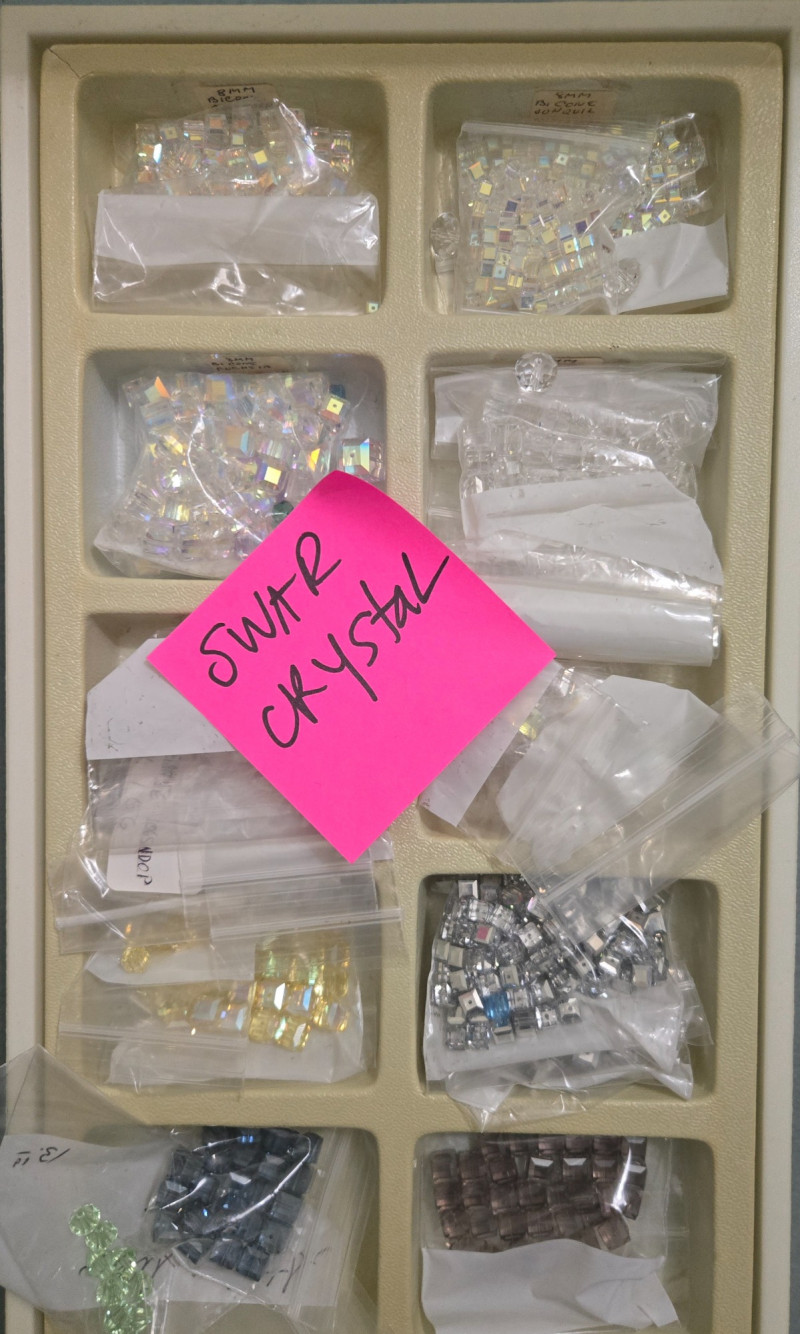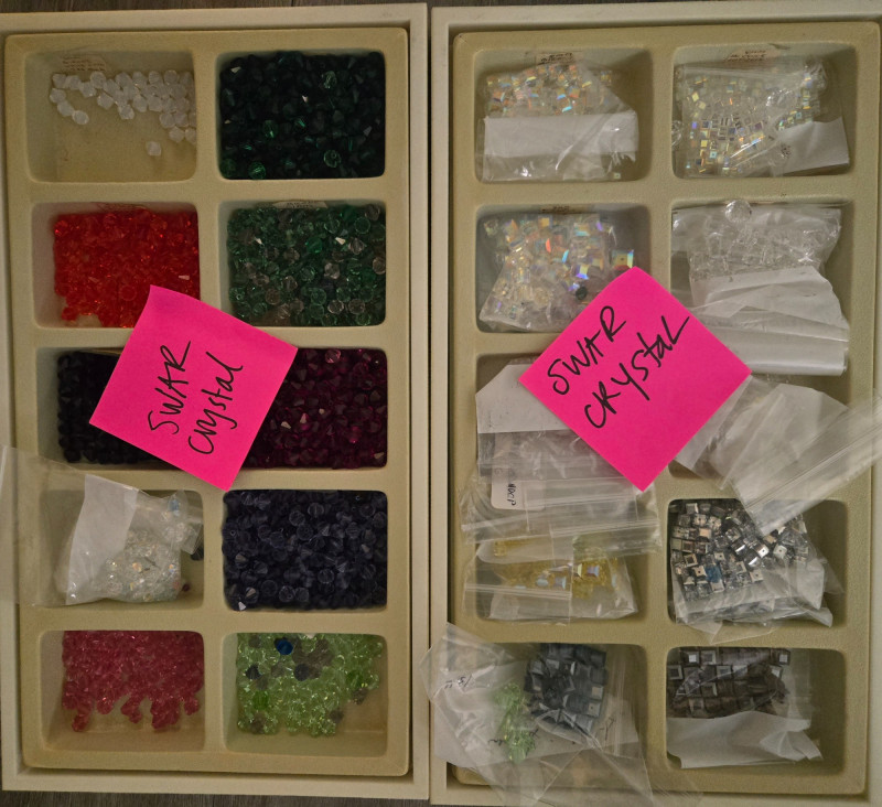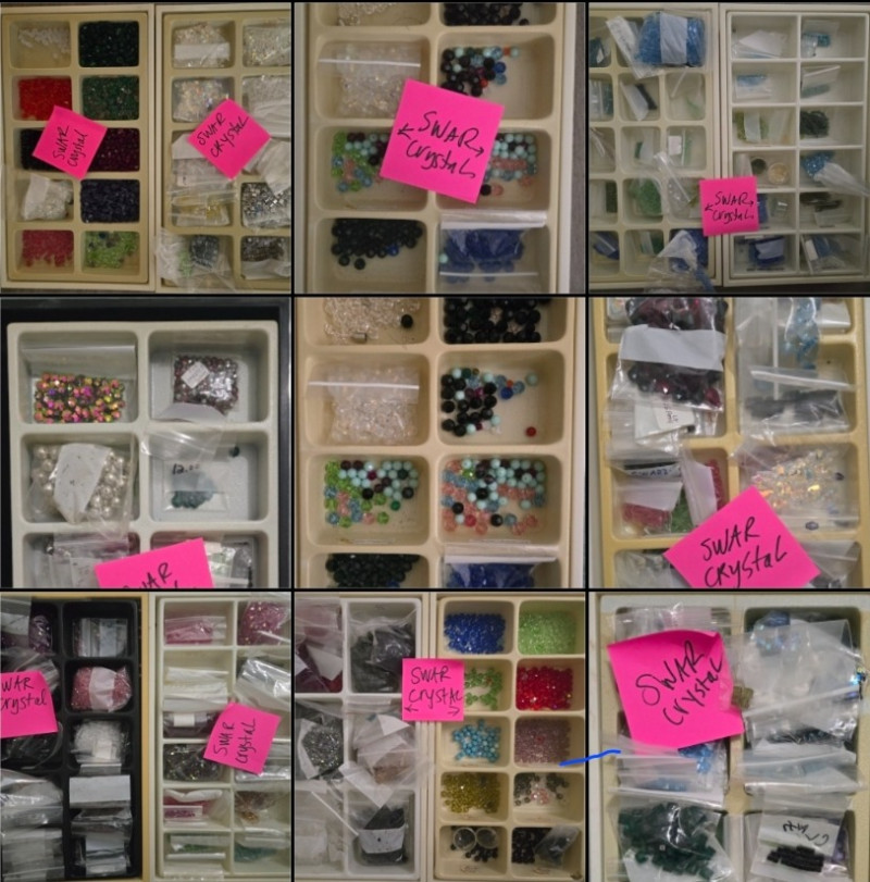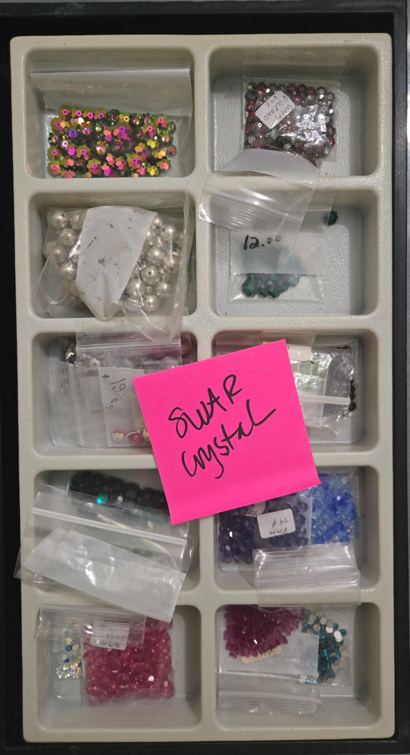 This is a beautifully organized collection of Swarovski crystals and beads, ideal for jewelry making, embellishment, or high-end craftwork. Multiple Trays: Each compartment holds beads sorted by type, size, and color, making it easy to find exactly what you need. Labels “Swar Crystal” / “SWAR Crystal”: These indicate genuine Swarovski elements, known for their precision cut, clarity, and brilliance. Variety of Shapes: Faceted rounds: Classic sparkle for earrings, bracelets, and necklaces. Pearls: Swarovski’s imitation pearls have a smooth finish and durable coating. Bicones and rondelles: Ideal for spacers and adding dimension to designs. Crystal Clarity: Swarovski uses lead-free advanced crystal formulas for unmatched sparkle. Durability: Coatings resist fading and scratching, making them perfect for wearable art. Color Range: Includes iridescent, opaque, and transparent finishes—great for seasonal or thematic designs. What’s in the Collection