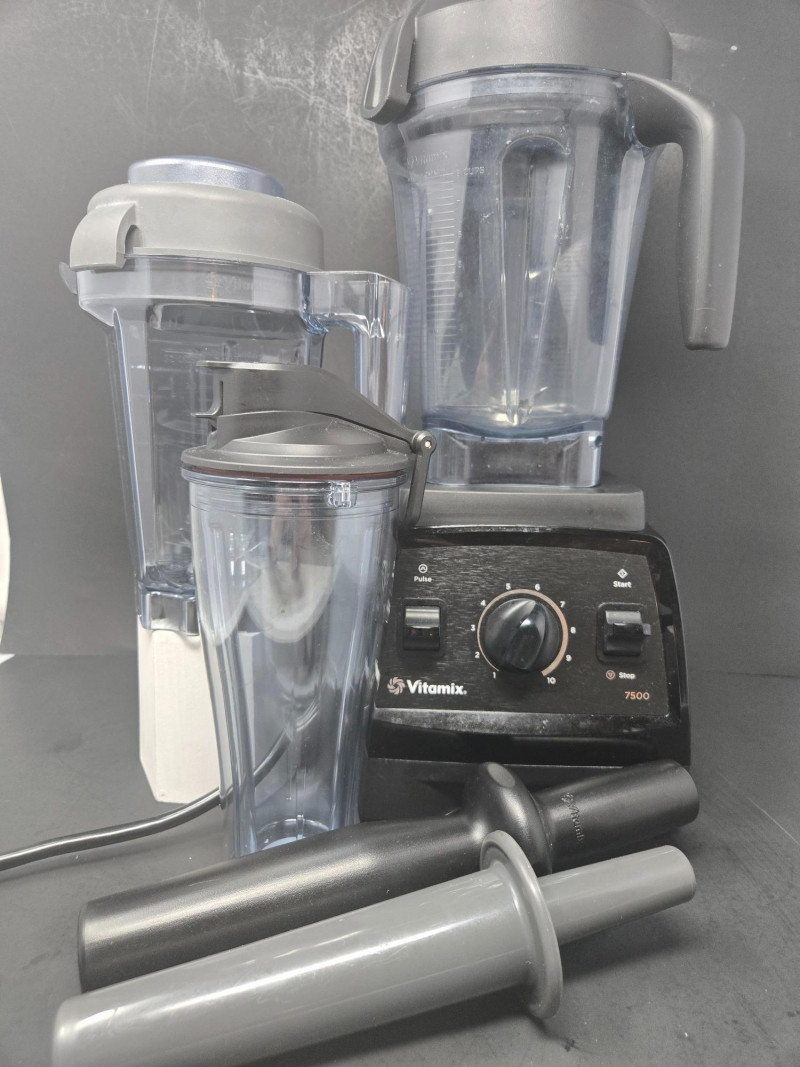 Vitamix blender set, specifically the Vitamix 7500 model, along with multiple accessories.Main Components