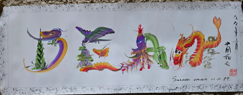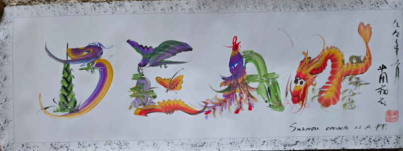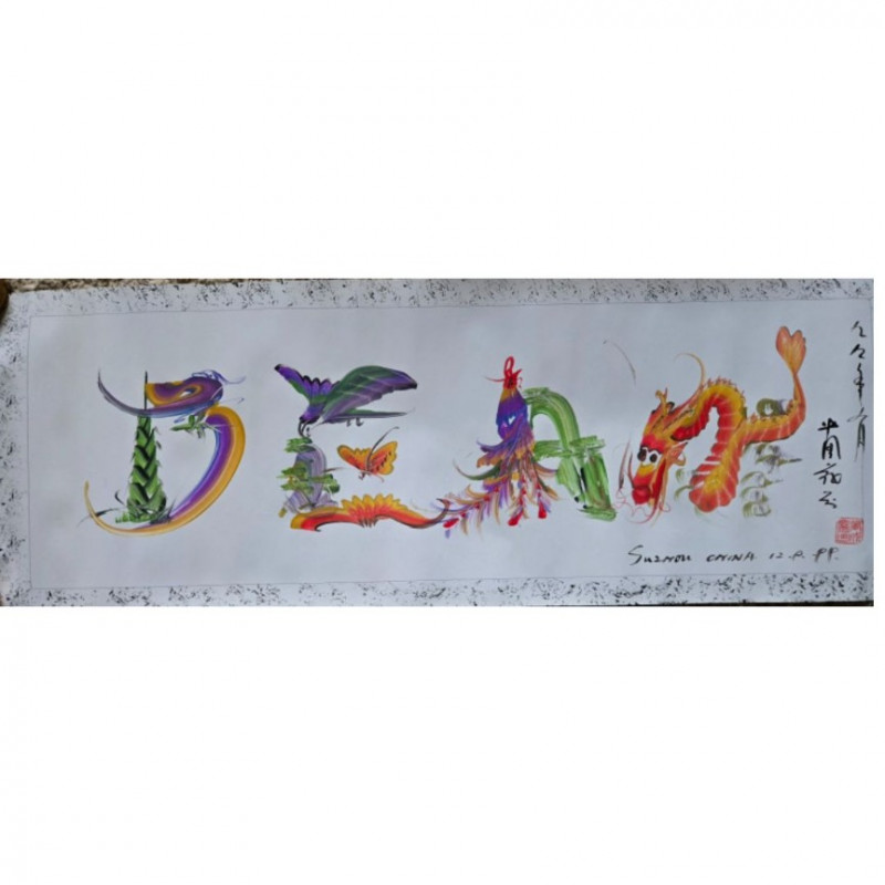 Asian-style art print that spells out the word “Dream” using colorful, nature-inspired and mythical elements. Text Design: Style: Additional Details: This is a custom decorative art piece, often sold as a souvenir or personalized artwork in Chinese cultural centers. It blends calligraphy, symbolism, and vibrant colors to convey positivity and aspiration (the word “Dream”).Description