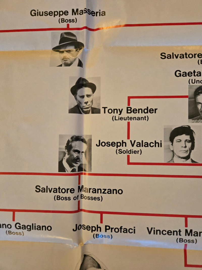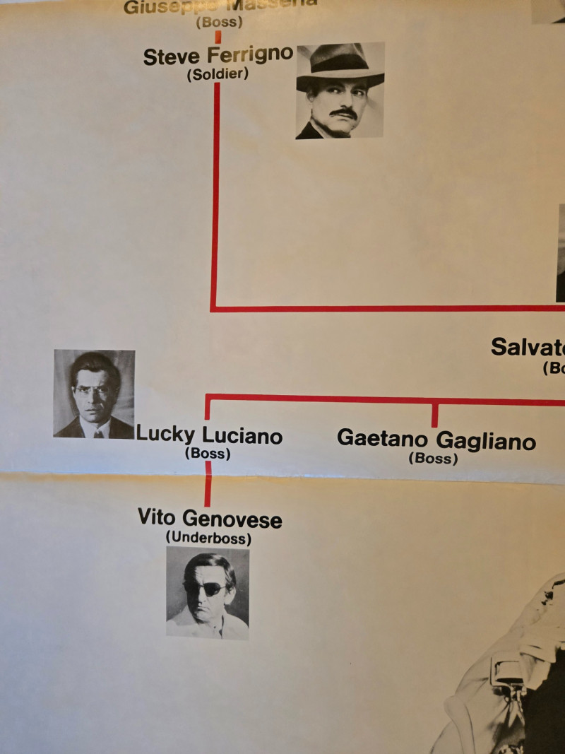 This poster for The Valachi Papers is a gripping visual representation of organized crime history, blending documentary realism with cinematic intensity. Here's a breakdown of its significance: Title: The Valachi Papers Release Year: 1972 Director: Terence Young Produced by: Dino De Laurentiis Starring: Charles Bronson, Lino Ventura Music by: Riz Ortolani Genre: Crime / Drama / Historical Based on: The real-life testimony of Joseph Valachi before the U.S. Senate Committee investigating organized crime Organizational Chart: A detailed hierarchy of Mafia figures, including Giuseppe Masseria, Lucky Luciano, Vito Genovese, and Joseph Valachi himself—emphasizing the film’s factual foundation. Tagline: “Fact not fiction”—underscoring the movie’s basis in real events and its exposé nature. Stylized Imagery: A man in a barber chair, partially disintegrating, symbolizes betrayal, violence, and the unraveling of secrecy within the mob. Design Tone: Stark, investigative, and journalistic—more dossier than drama, reflecting the film’s serious intent. The film dramatizes Valachi’s revelations about the Mafia, offering a rare inside look at its structure and operations. It explores loyalty, fear, and the consequences of breaking omertà, the code of silence. The Valachi Papers was one of the first major films to depict the Mafia based on real testimony, paving the way for later crime dramas. The poster is a compelling artifact for collectors interested in true crime cinema and Charles Bronson’s dramatic roles. About the Film