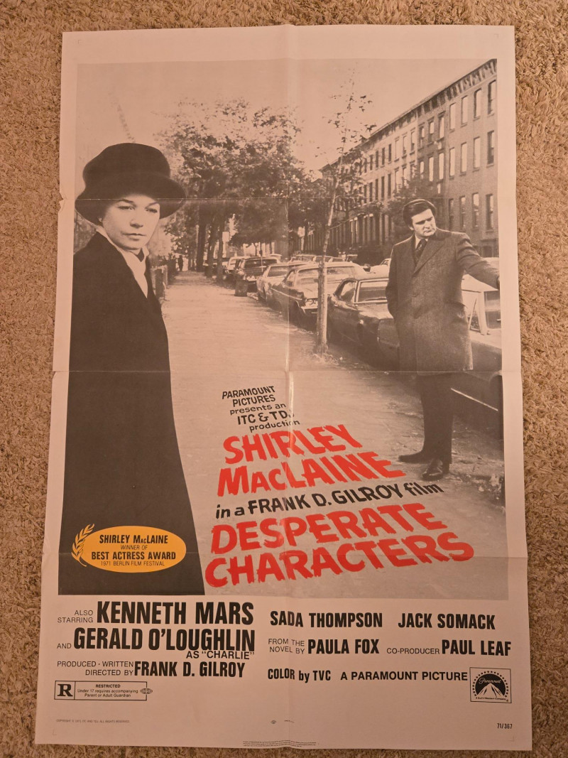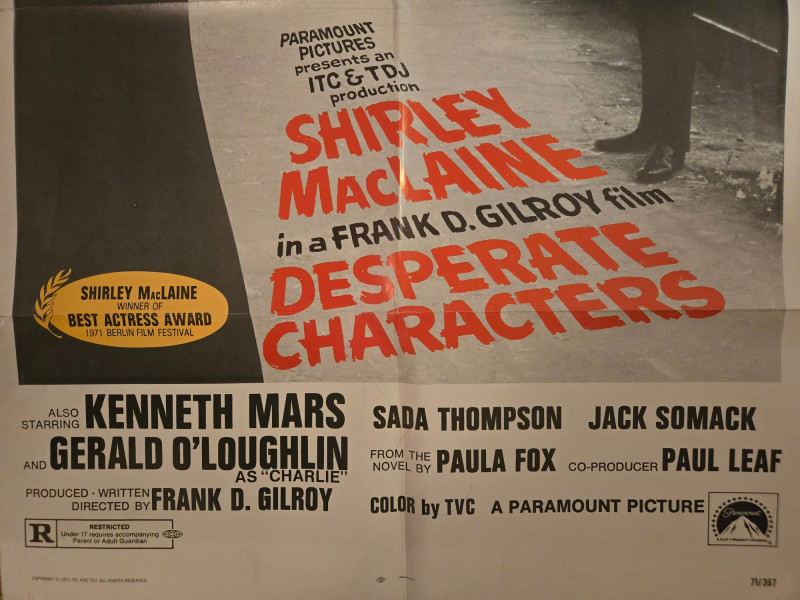 Lot # 120 - 'Desperate Characters' w/Shirley MacLaine Movie Poster