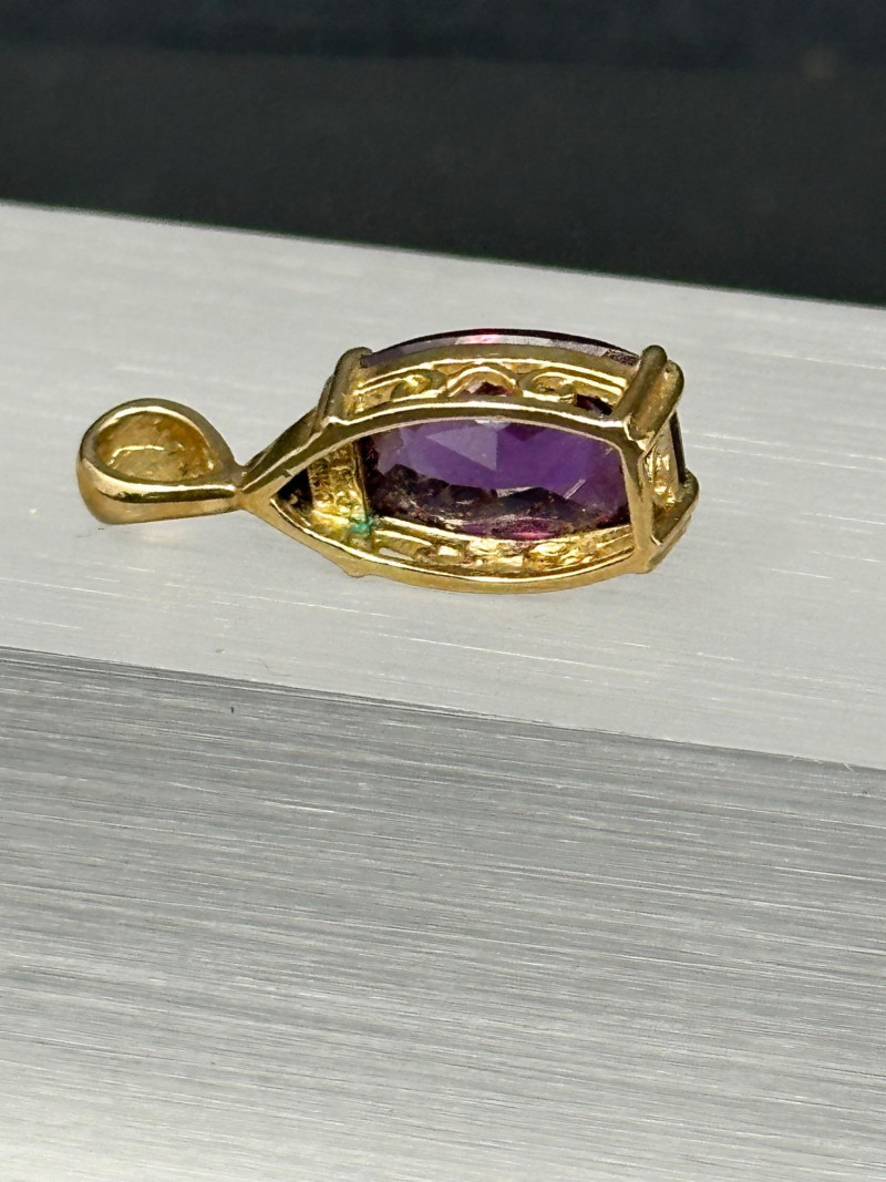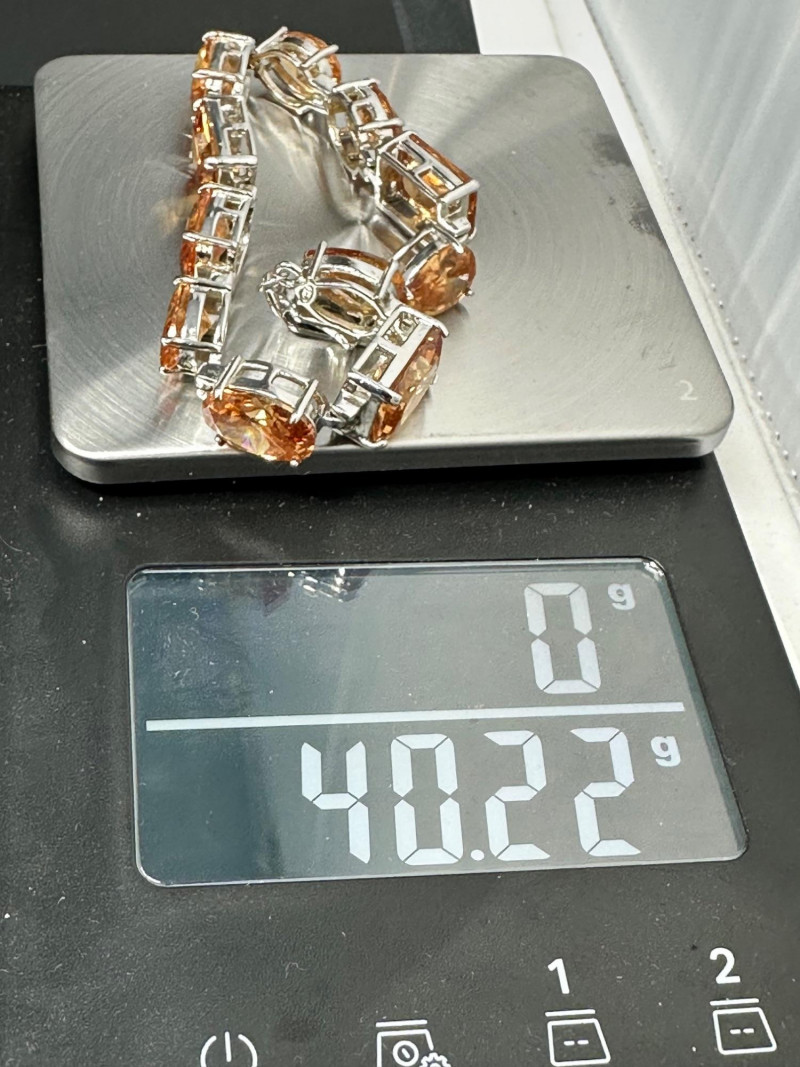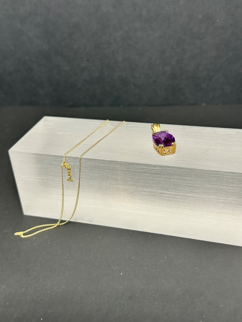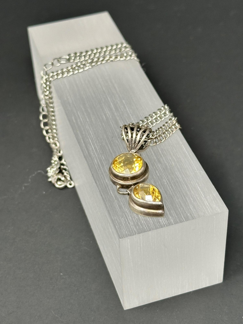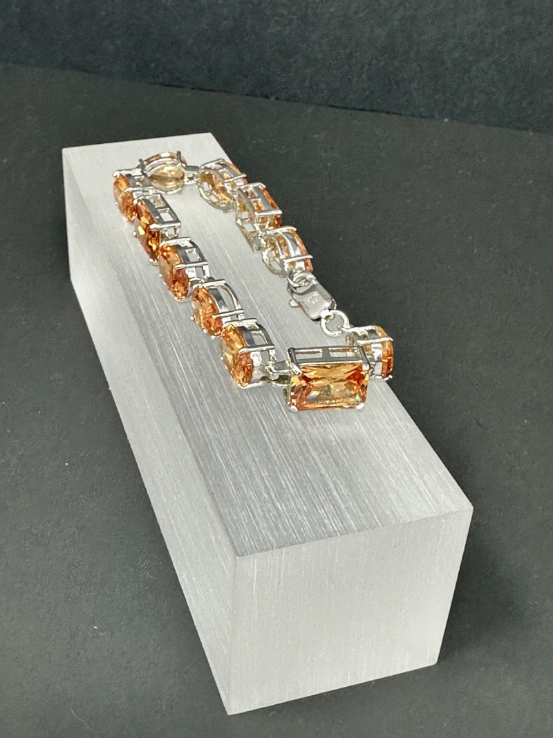 A vibrant four-piece jewelry collection featuring colorful gemstones and mixed metalwork: Sterling Orange Gemstone Bracelet: A bold silver bracelet set with large faceted orange stones in a symmetrical design. Crafted in sterling silver for lasting brilliance. Sterling Purple & Gold Pendant: A rich purple gemstone set in a gold-toned sterling bezel, offering warm contrast and elegant detail. Chain with this pendant was not marked. Sterling Gold Necklace with Pendant: A delicate gold-toned sterling necklace with a small coordinating pendant, ideal for layering or everyday wear.