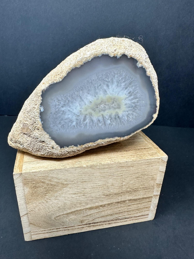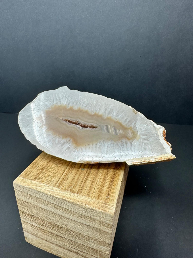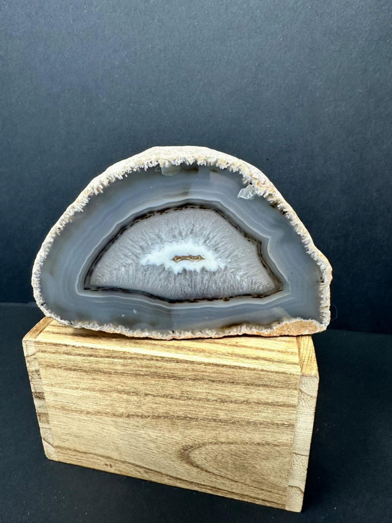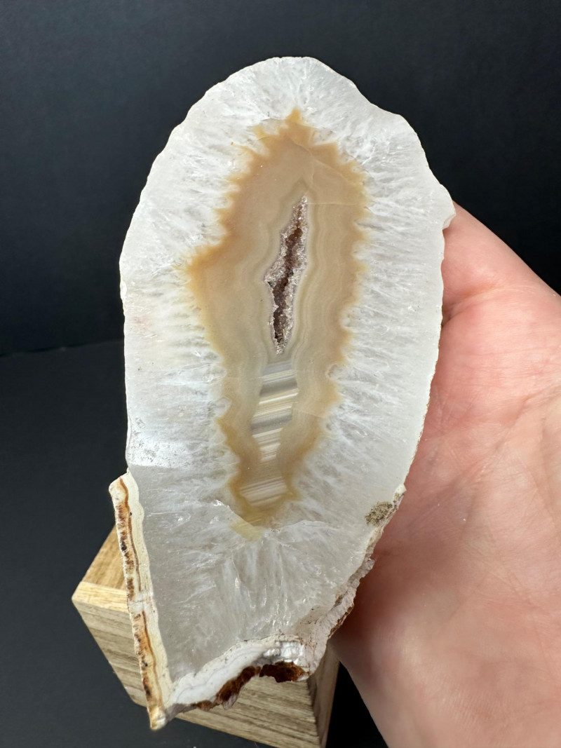Lot # 38 - Trio of Polished Geode Halves – Crystal Interiors and Subtle Banding