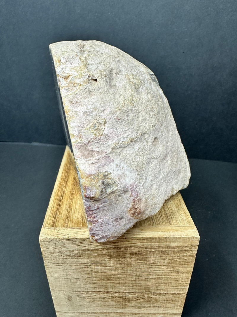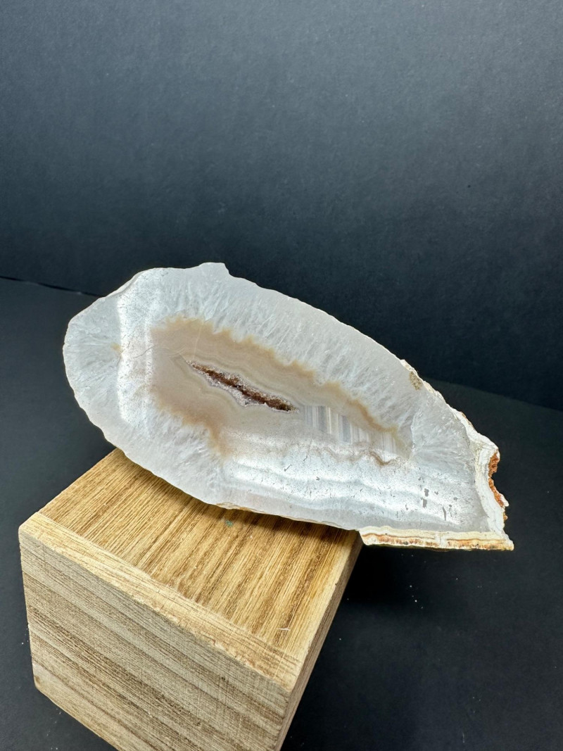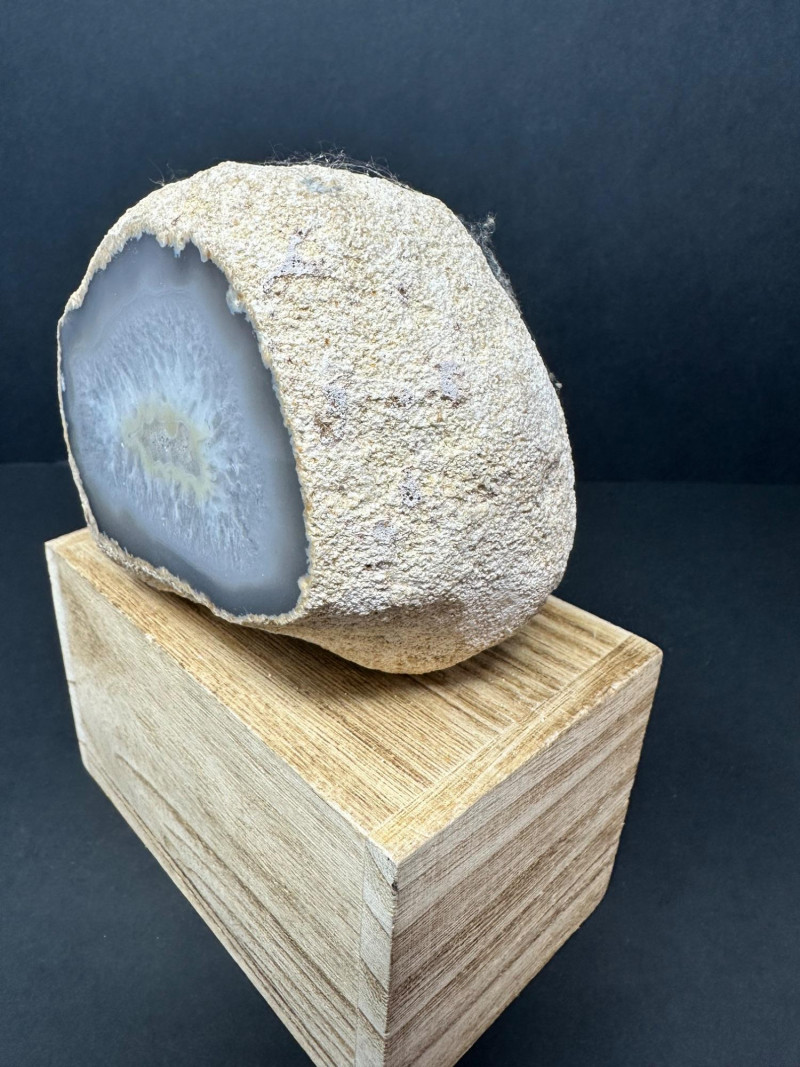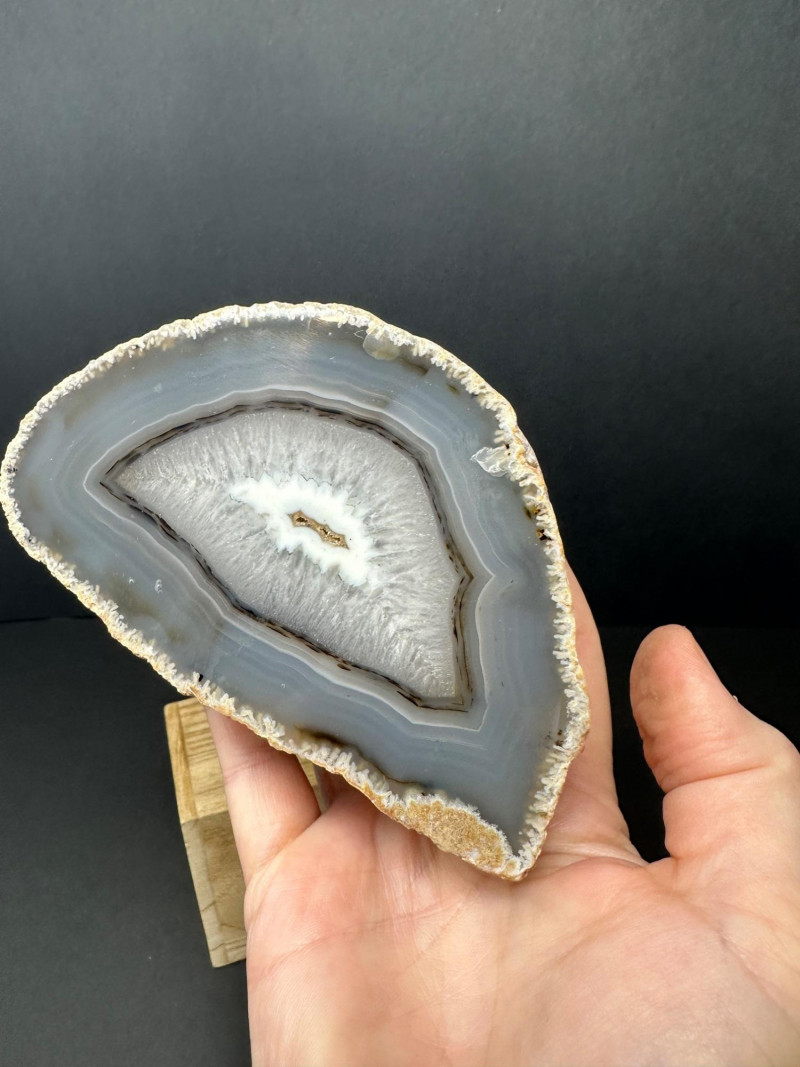 Lot # 38 - Trio of Polished Geode Halves – Crystal Interiors and Subtle Banding