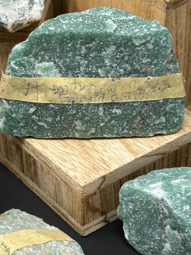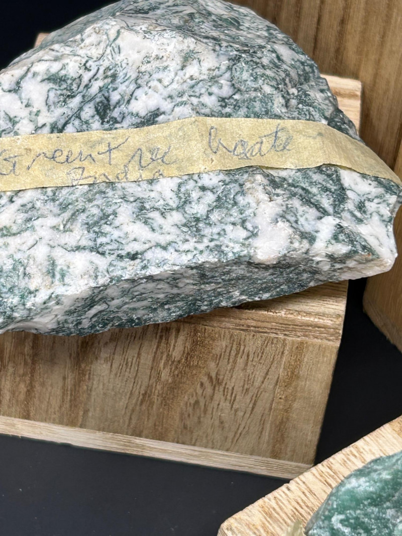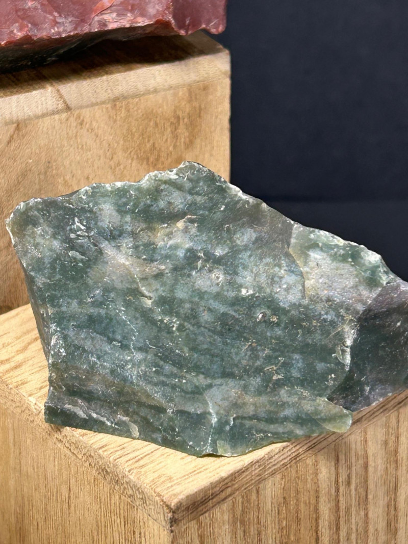 Found in granitic pegmatites—slow‑cooling pockets of magma that allow large feldspar crystals to form. Despite the name, this isn’t actually an agate in the strict sense. It’s a white chalcedony with green dendritic (branch‑like) inclusions.