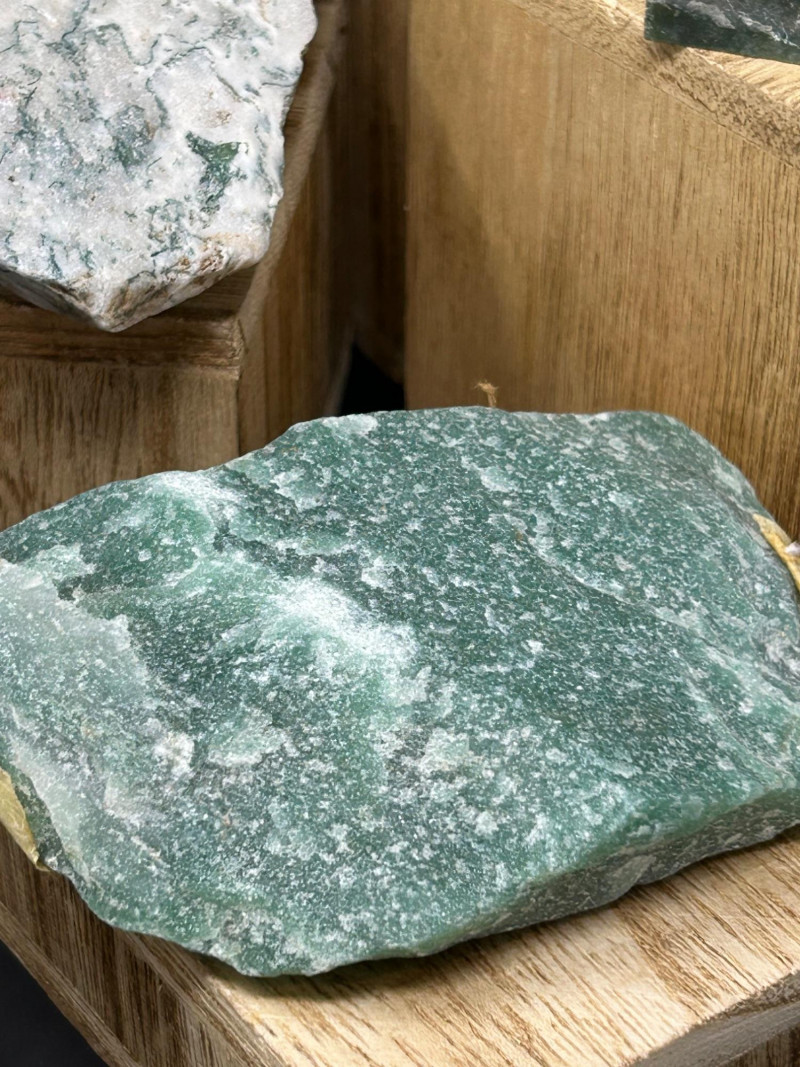 The “tree” patterns come from manganese or iron minerals that seep into fractures as the stone forms.Aventurine