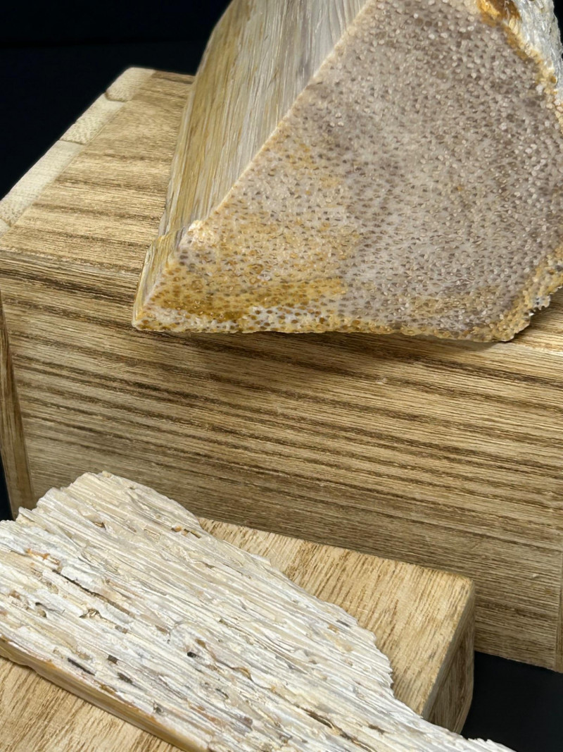 These are common in petrified wood from the western United States, especially Arizona, Oregon, and Washington. That dotted pattern is the cross‑section of the wood’s cellular structure — the tiny tubes and vessels that once carried water and nutrients. When polished, this surface often looks like a mosaic of tiny pores. A glossy finish like this is usually done on agatized wood (wood replaced primarily by chalcedony), because it takes a smooth, glassy polish.Features in Your Specimen