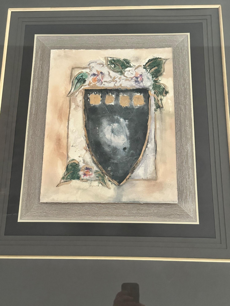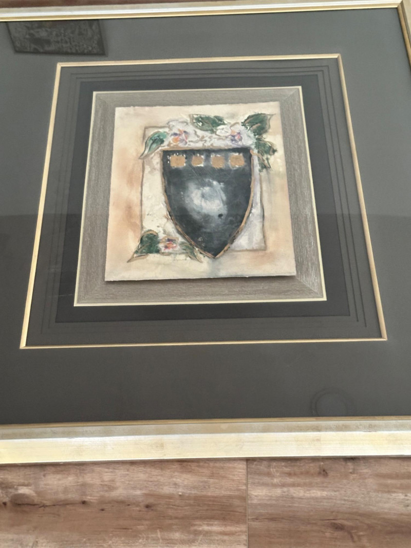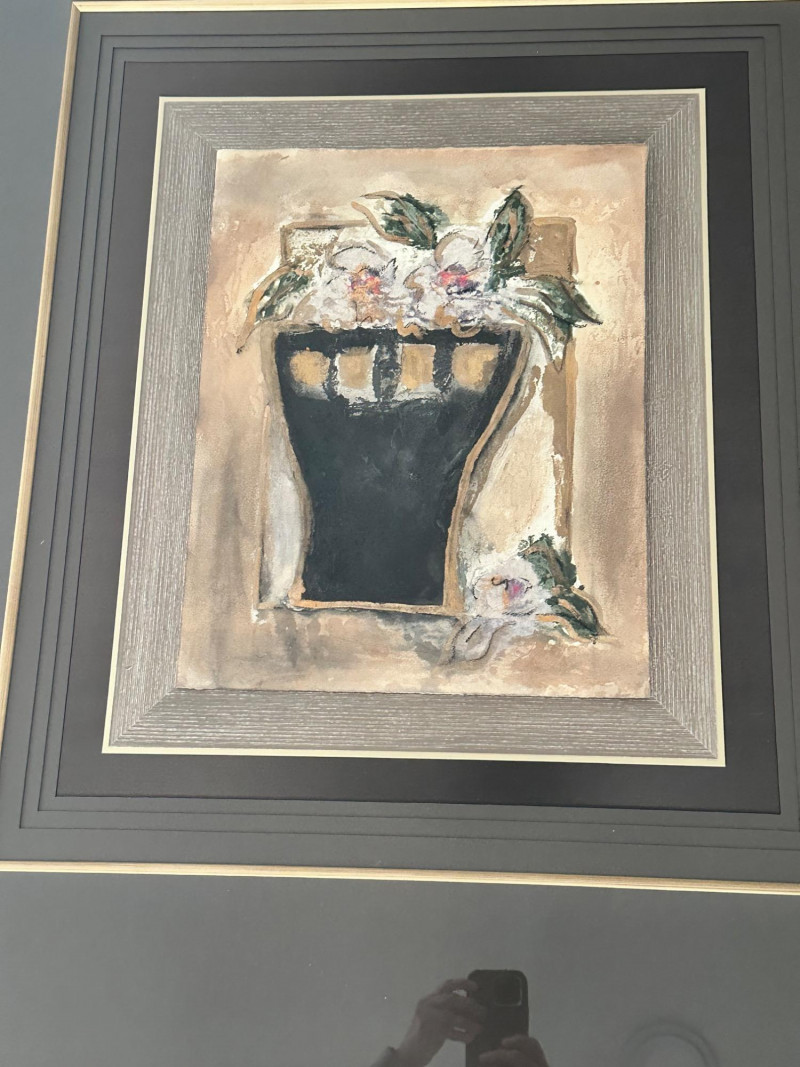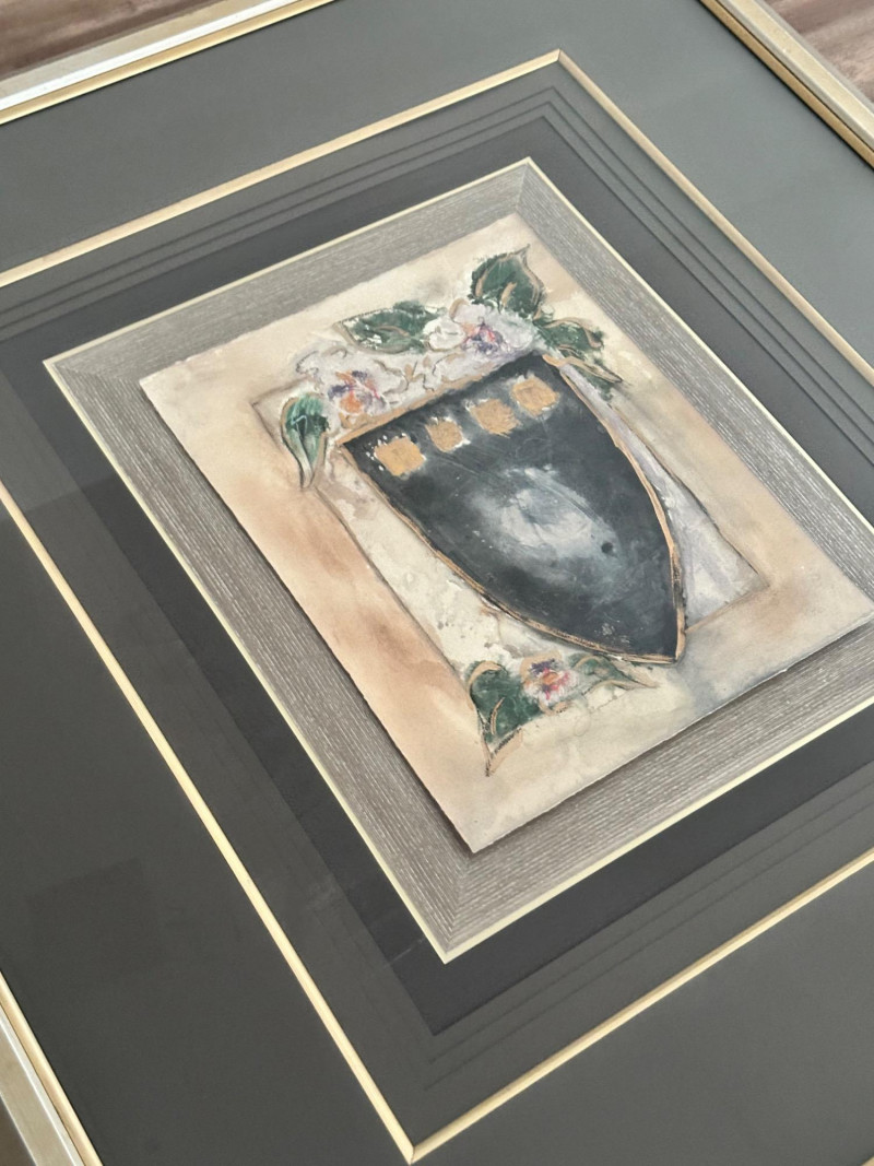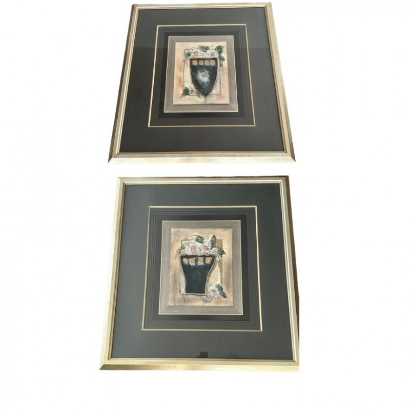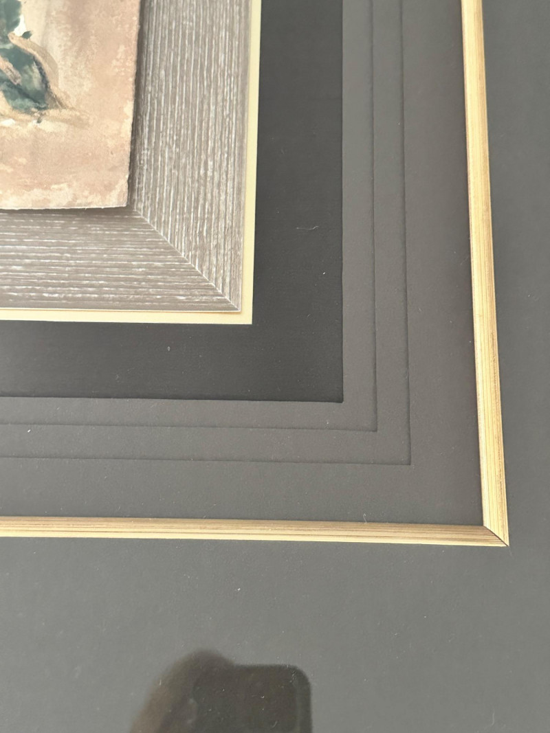 A striking very large framed wall art piece featuring a classic Tuscan-inspired urn and floral motif. The composition evokes Old World European décor, with soft earth tones, painterly textures, and a timeless Mediterranean aesthetic. The artwork is professionally presented in an oversized, multi-layer matting arrangement, combining deep charcoal and black mats with subtle gold accent lines. It is finished with a wide gold-tone frame, giving the piece a dramatic presence and refined architectural depth. The layered presentation draws the eye inward, making it an ideal statement piece for formal living spaces, dining rooms, entryways, or traditional interiors. Style: Tuscany / Mediterranean / Old World Subject: Classical urn with floral accents Medium: Print Presentation: Extra-large framed wall art Matting: Multi-layer mat with gold accent lines Frame: Wide gold-tone frame Orientation: SquareDetails: