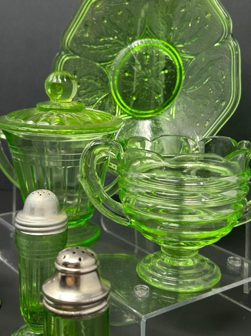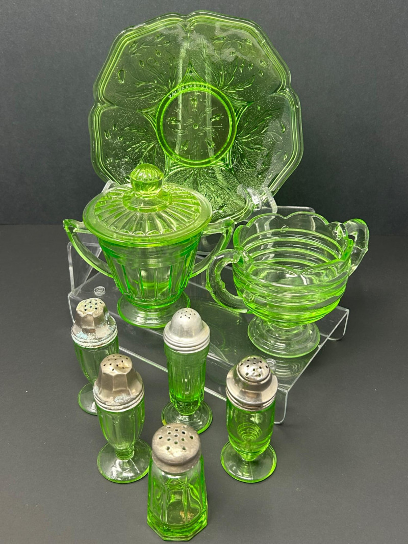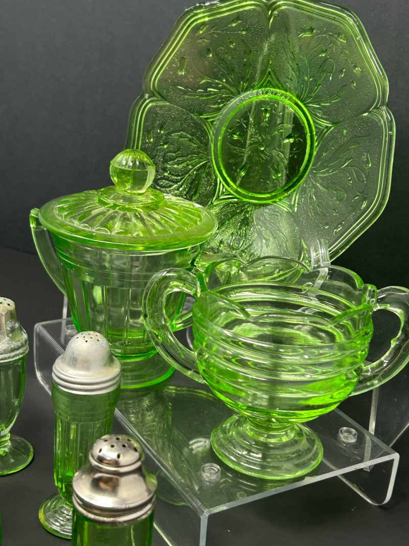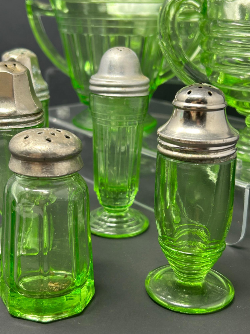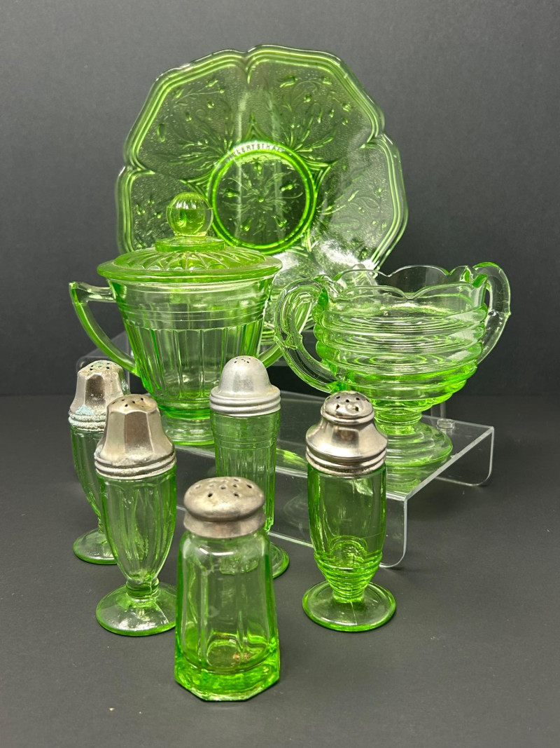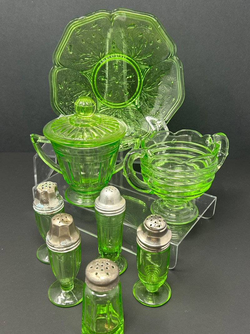 Lot # 18 - Uranium Glass Tableware & Salt & Pepper Shaker Collection