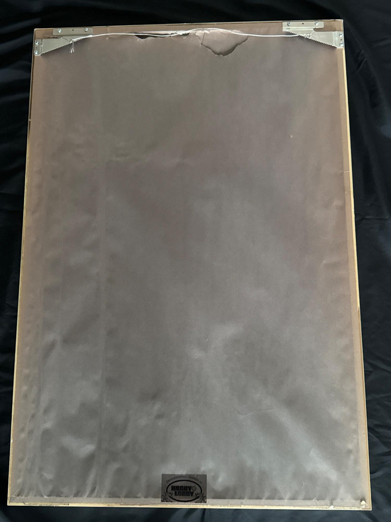 Large-format vintage NFL poster featuring Arizona Cardinals offensive lineman #66 in a powerful in-game action pose. The image captures the grit and intensity of classic professional football, with bold team colors and strong mid-play movement typical of late 20th-century sports photography. A printed “Conrad F. Dobler” signature appears in the lower right as part of the original poster artwork (not hand-signed). The poster is housed in a simple white frame and retains its original backing, making it well suited for display in a sports room, office, or vintage memorabilia collection. Player: Conrad Dobler (#66) Team: Arizona Cardinals Item Type: Vintage NFL poster Signature: Printed signature within the image (not an autograph) Frame: White frame; backing marked Hobby Lobby Dimensions: approx. 33.5" W x 23" H Orientation: HorizontalDetails: