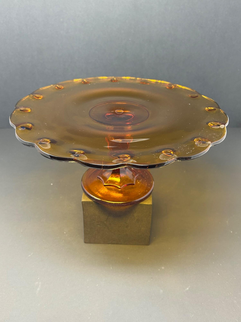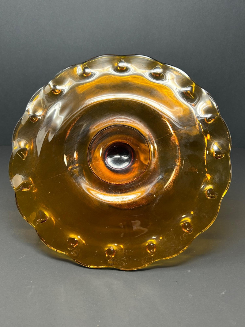 Lot # 62 - Indiana Glass “Gold Amber” Serving Set – Cake Stand & Tri-Top Bowl