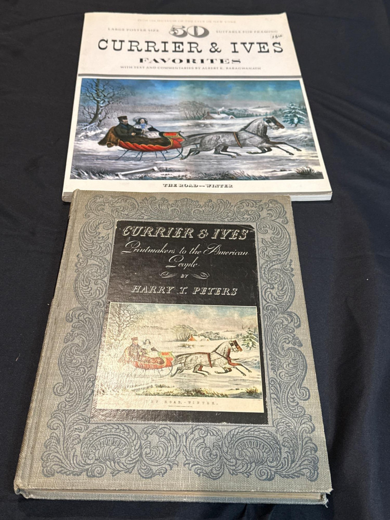 A substantial and visually rich collection of art and printmaking books, featuring classic American lithography alongside influential contemporary glass artists. This lot includes multiple Currier & Ives volumes highlighting iconic 19th-century American scenes, paired with exhibition-quality publications on Dale Chihuly and Einar & Jamex de la Torre. Together, these books offer a compelling blend of American history, folk imagery, and modern studio glass, making this an excellent grouping for collectors, decorators, libraries, or anyone assembling a serious art reference shelf. Lot Includes (multiple volumes): Currier & Ives America 100 Currier & Ives Favorites (Museum of the City of New York) Currier & Ives Favorites Chihuly: Form from Fire Einar & Jamex de la Torre Subjects: American lithographs, 19th-century rural & winter scenes, studio glass, contemporary mixed-media glass Format: Oversized softcover & hardcover art books Illustrations: Full-color plates and reproductions throughout Language: English Era: Late 20th century publications (varies by volume)Details:
