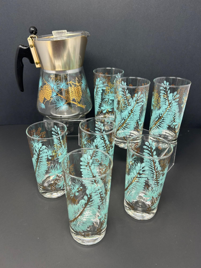 Lot # 30 - Vintage Uranium Glass Serving & Juicer Set with Handled Tray