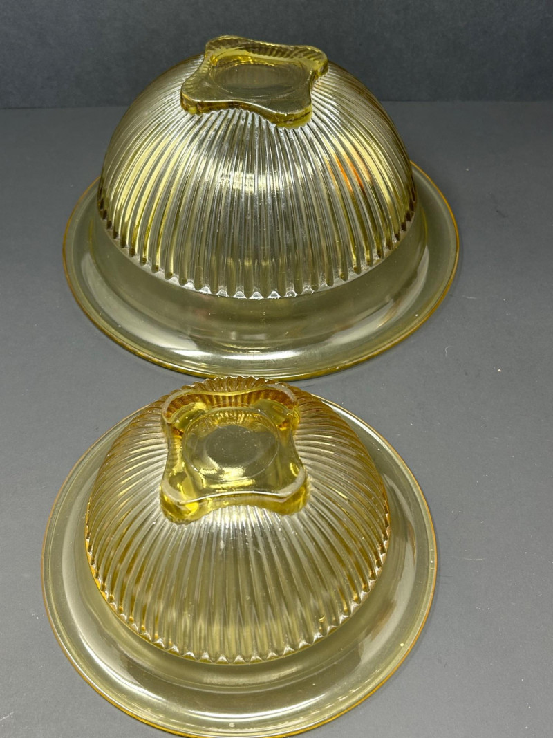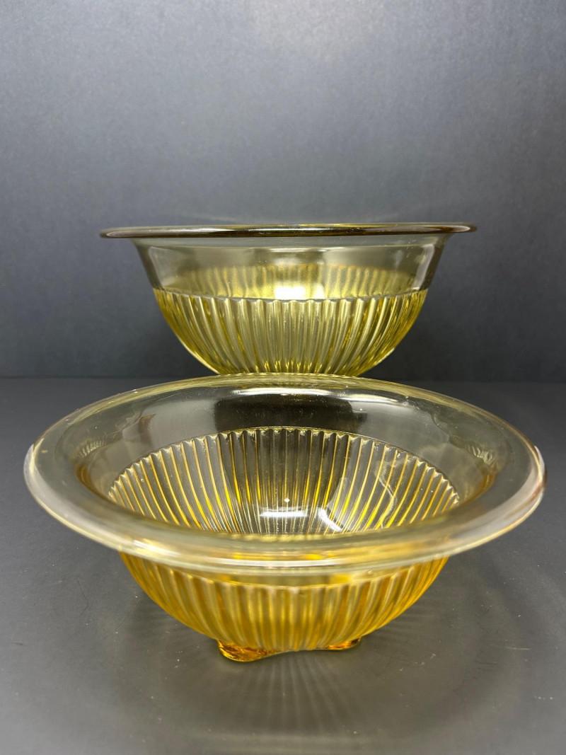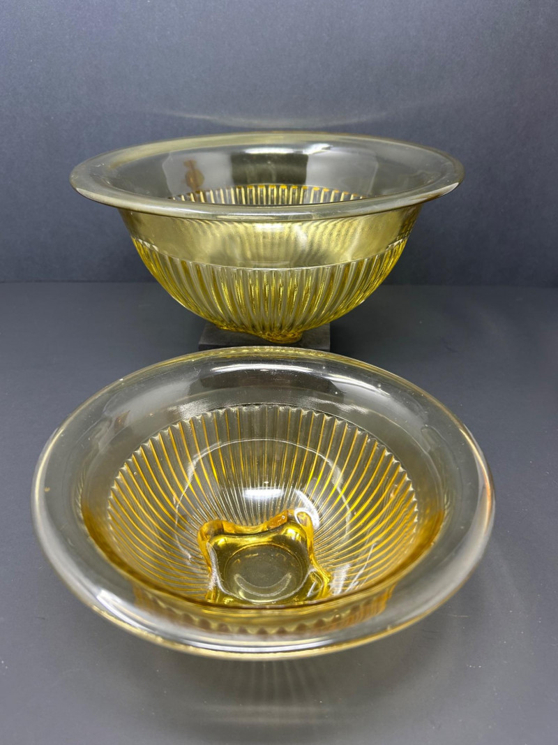 Ribbed Yellow Glass Mixing / Serving Bowls