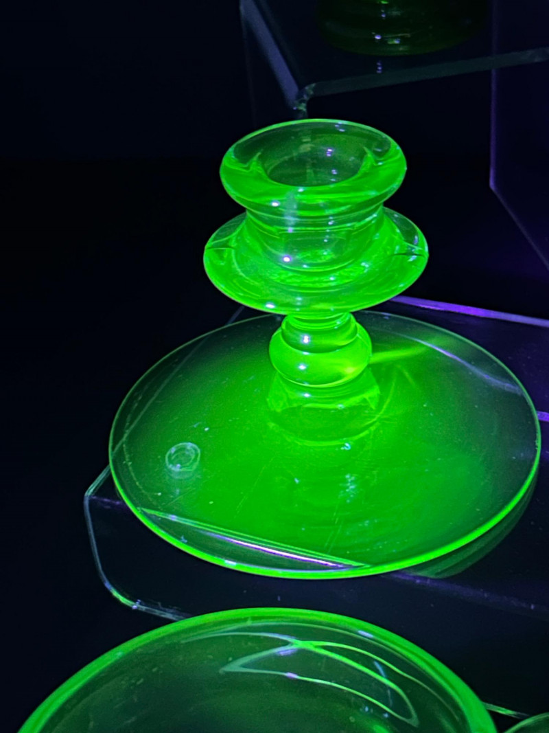 Color / Finish: Uranium green pressed glassCandlesticks (Pair)