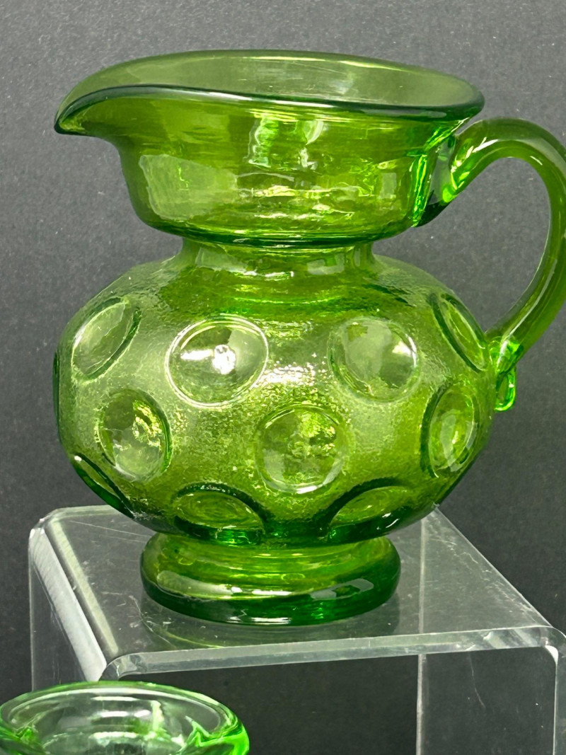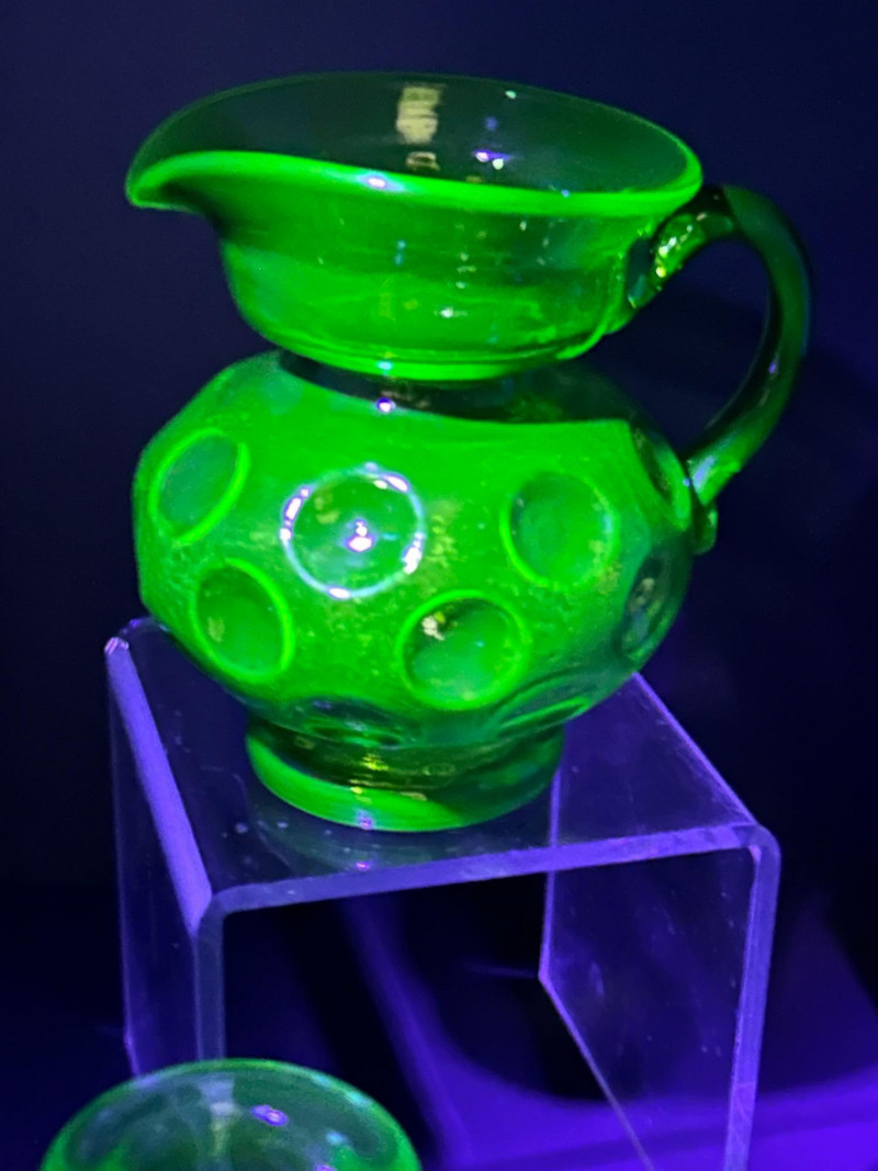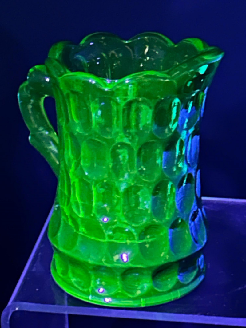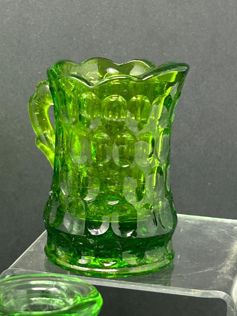 Color / Finish: Translucent uranium green pressed glass with applied handleSmall Creamer