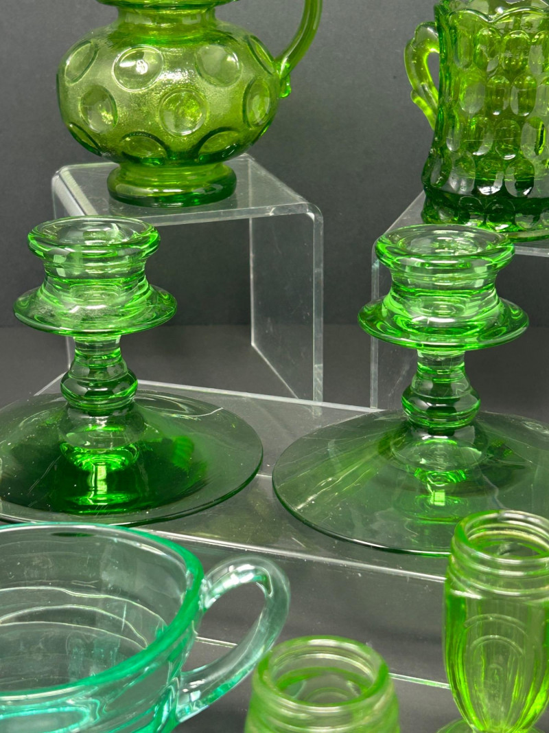 Lot # 50 - Uranium Green Depression Glass Lot – Pitchers, Candlesticks & More