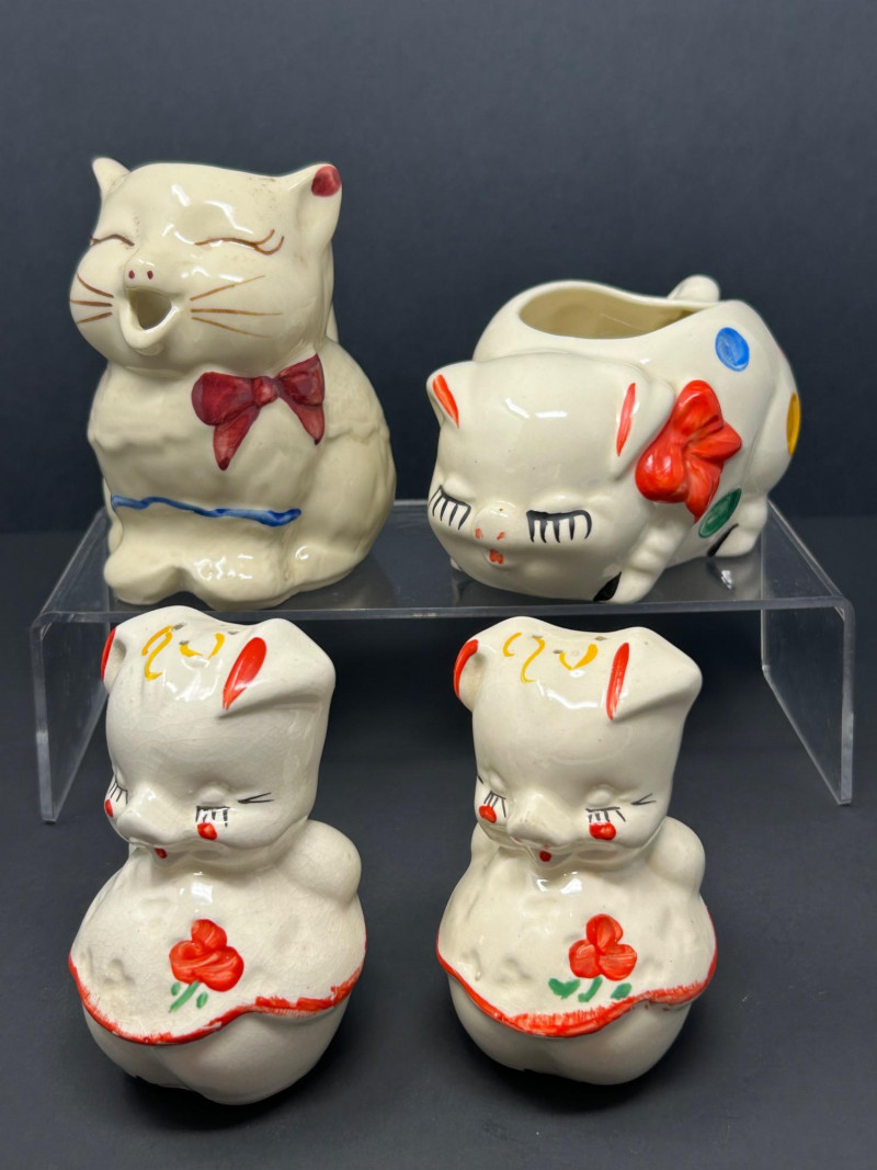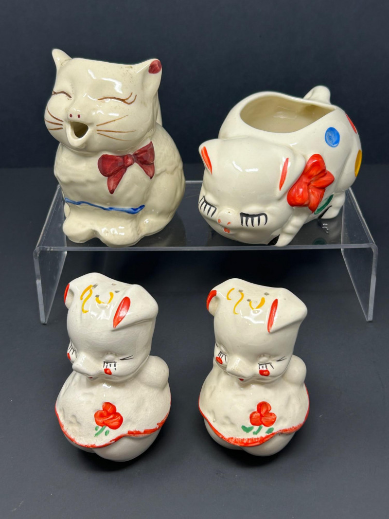 Lot # 54 - Charming Shawnee Smiley Pig & Cat Figural Creamers & Shakers