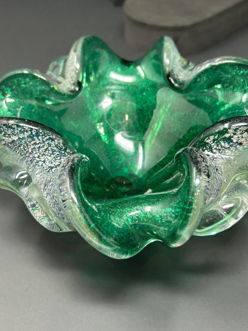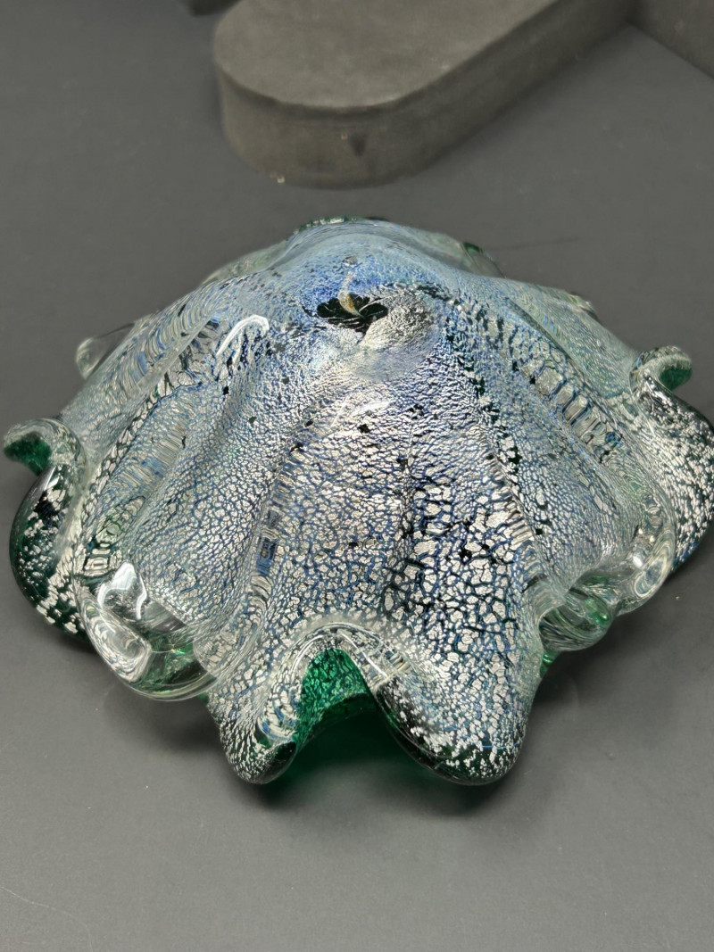 Silver-Fleck Ruffled Art Glass Ashtray Bowl (Likely Murano)