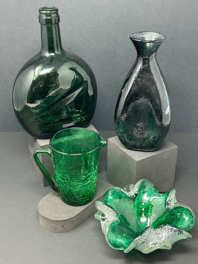 Lot # 60 - Vintage MCM Green Crackle Art Glass Lot