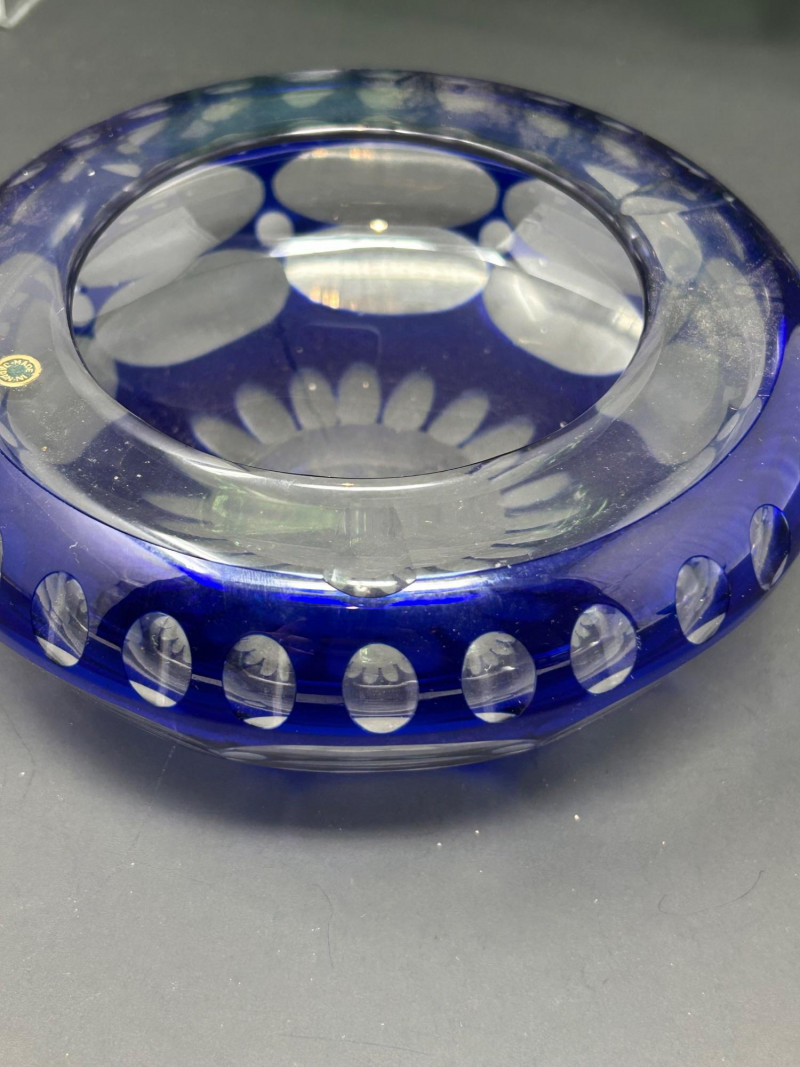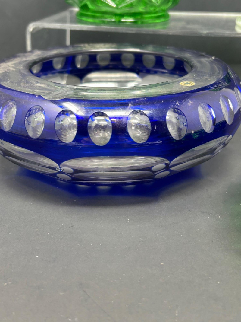 Design: Footed bowl with repeating oval and diamond cut decoration and a flared rimCobalt Blue Art Glass Bowl