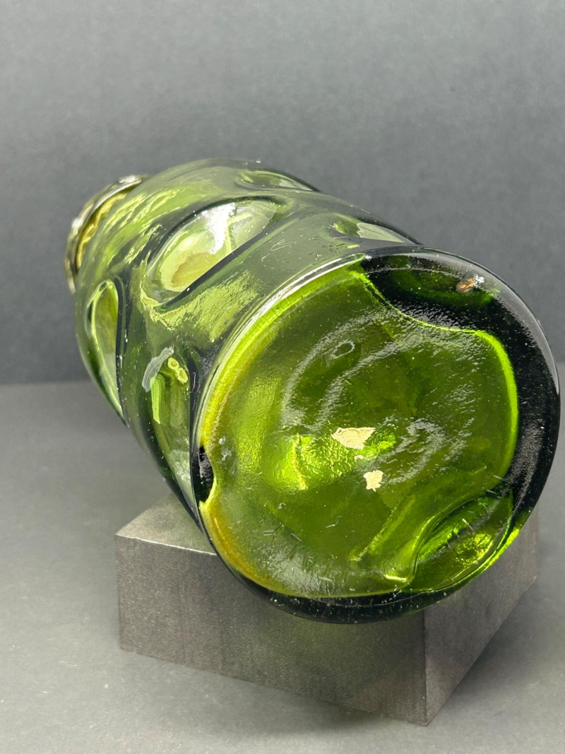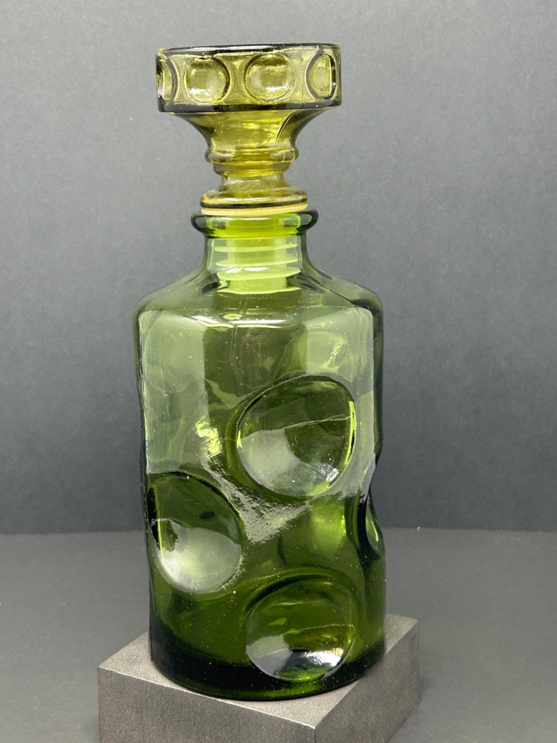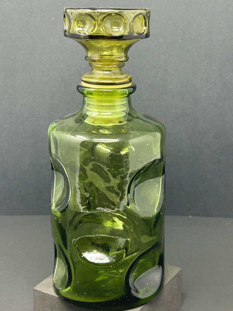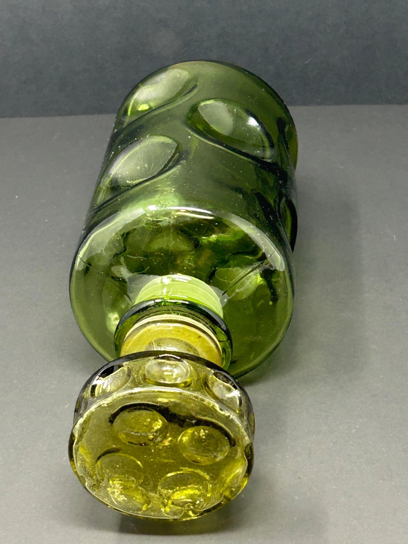 Lot # 26 - Vintage Green Thumbprint Glass Decanter with Matching Stopper