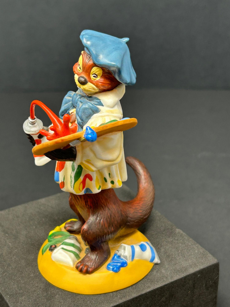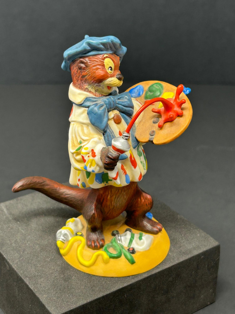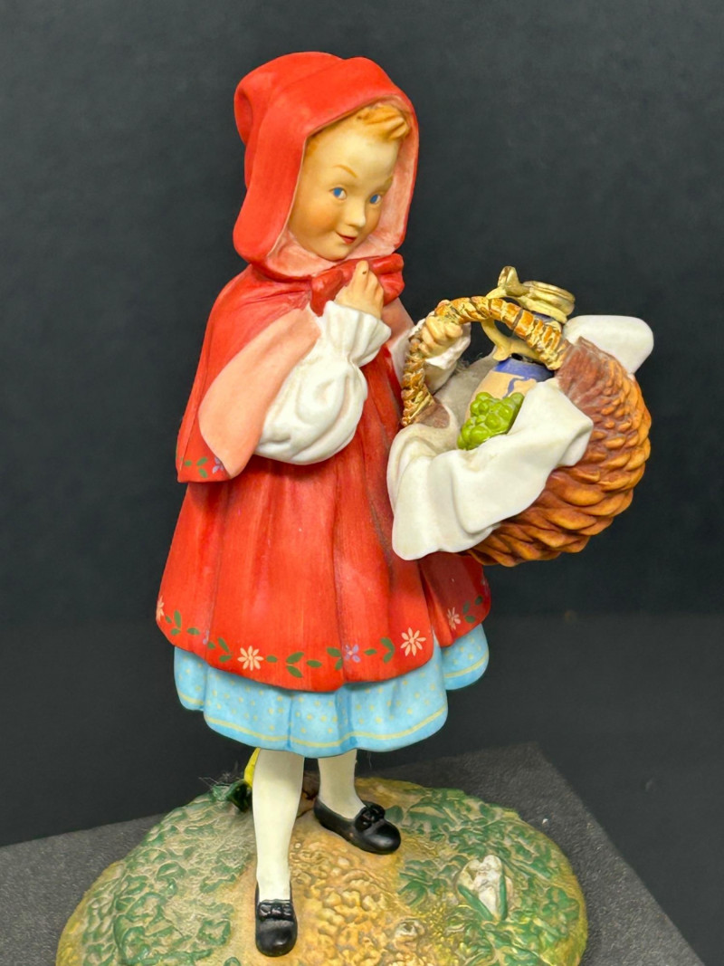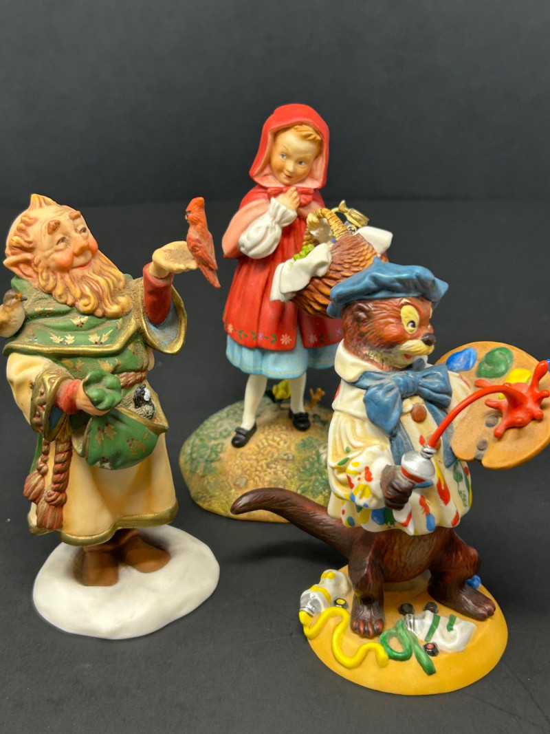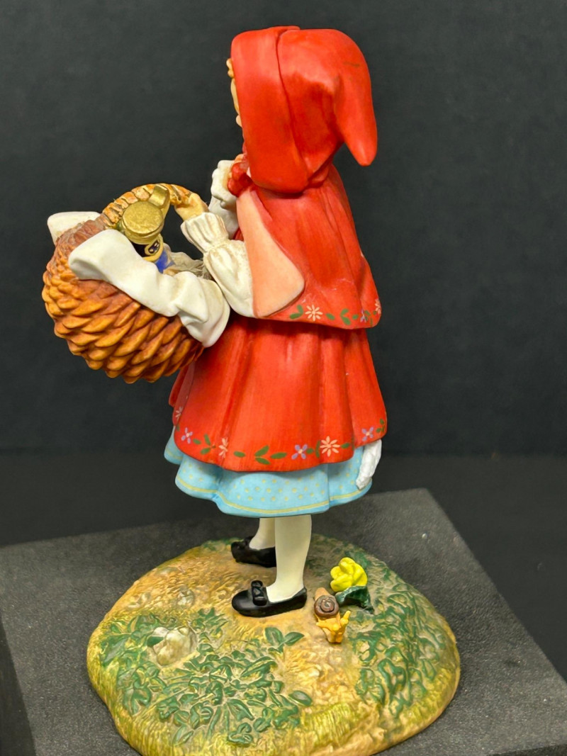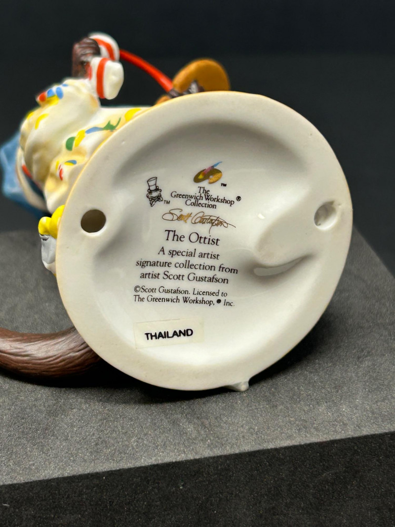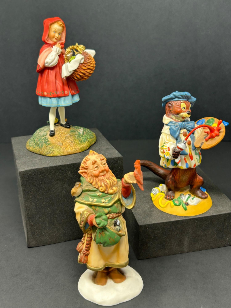 This charming three-piece porcelain figurine lot features beloved storybook characters designed by renowned illustrator Scott Gustafson and produced by The Greenwich Workshop. Each piece showcases Gustafson’s signature fairytale style, with expressive faces, rich hand-painted colors, and whimsical detailing. Included in the set are: “Little Red Riding Hood” – a classic fairytale depiction, complete with basket and forest base “The Ottist” – a playful anthropomorphic otter artist holding a paint palette “Brother Avery” – a warm, storybook monk figure with bird companion All three figures are limited editions, clearly marked on the underside, and made in Thailand. The lot includes Certificates of Authenticity for Little Red Riding Hood and The Ottist, enhancing collectibility and display appeal. Artist: Scott Gustafson Publisher: The Greenwich Workshop Medium: Hand-painted porcelain Titles Included: Little Red Riding Hood – Limited Edition #864 / 2500 Brother Avery – Limited Edition #779 / 2500 The Ottist – Special Artist Signature Collection Origin: Thailand Condition: Very good overall; no chips or cracks observed Certificates: COAs included (see photos)Details: