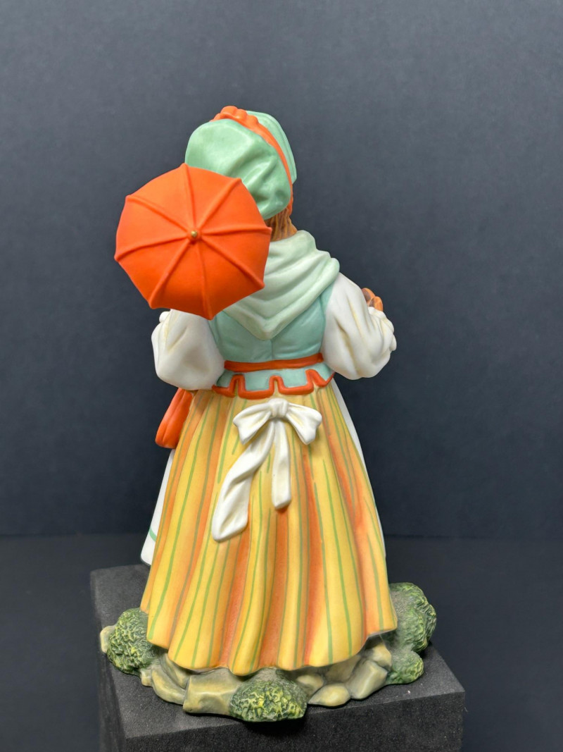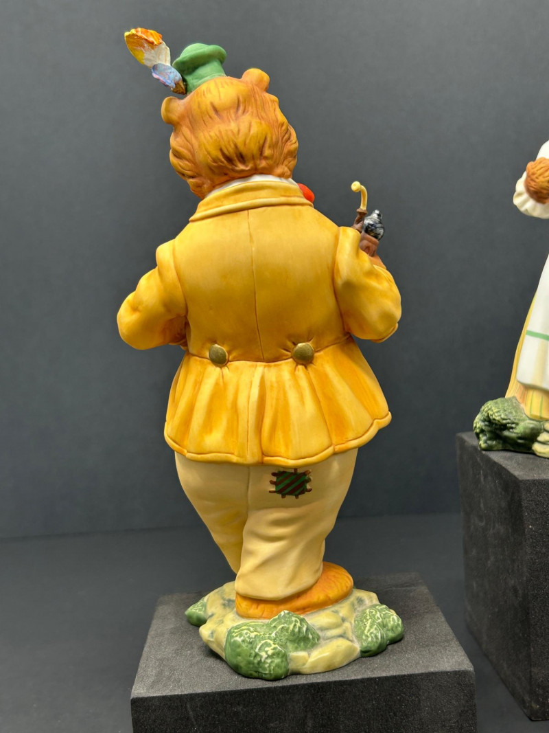 These whimsical characters are rendered in rich, storybook detail—Papa Bear in a jaunty waistcoat and cap, holding his pipe, and Mama Bear in a soft pastel dress with bonnet and parasol. Each figure displays Gustafson’s signature warmth and expressive personality, making this pair a standout display for collectors of fantasy art, fairy-tale décor, or Greenwich Workshop pieces.