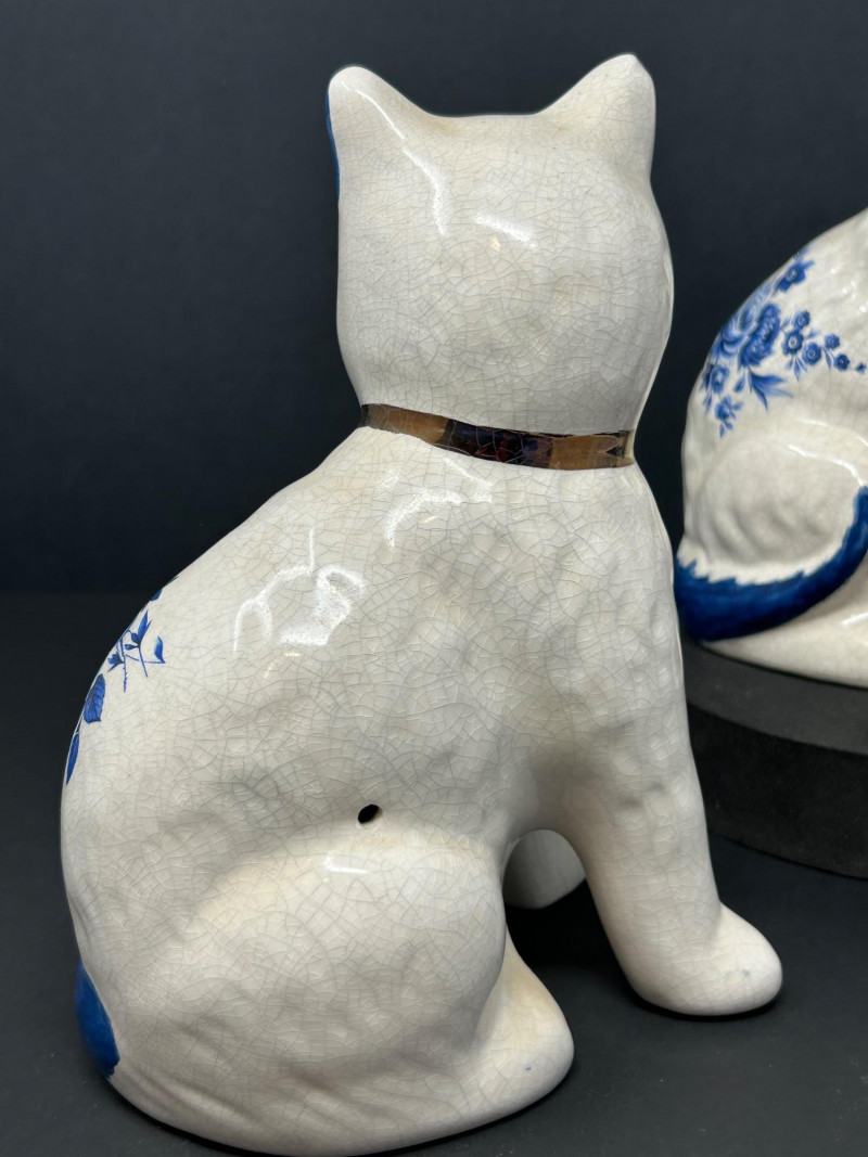 Lot # 82 - Likely Staffordshire-Style Blue & White Mantel Cat Figurines