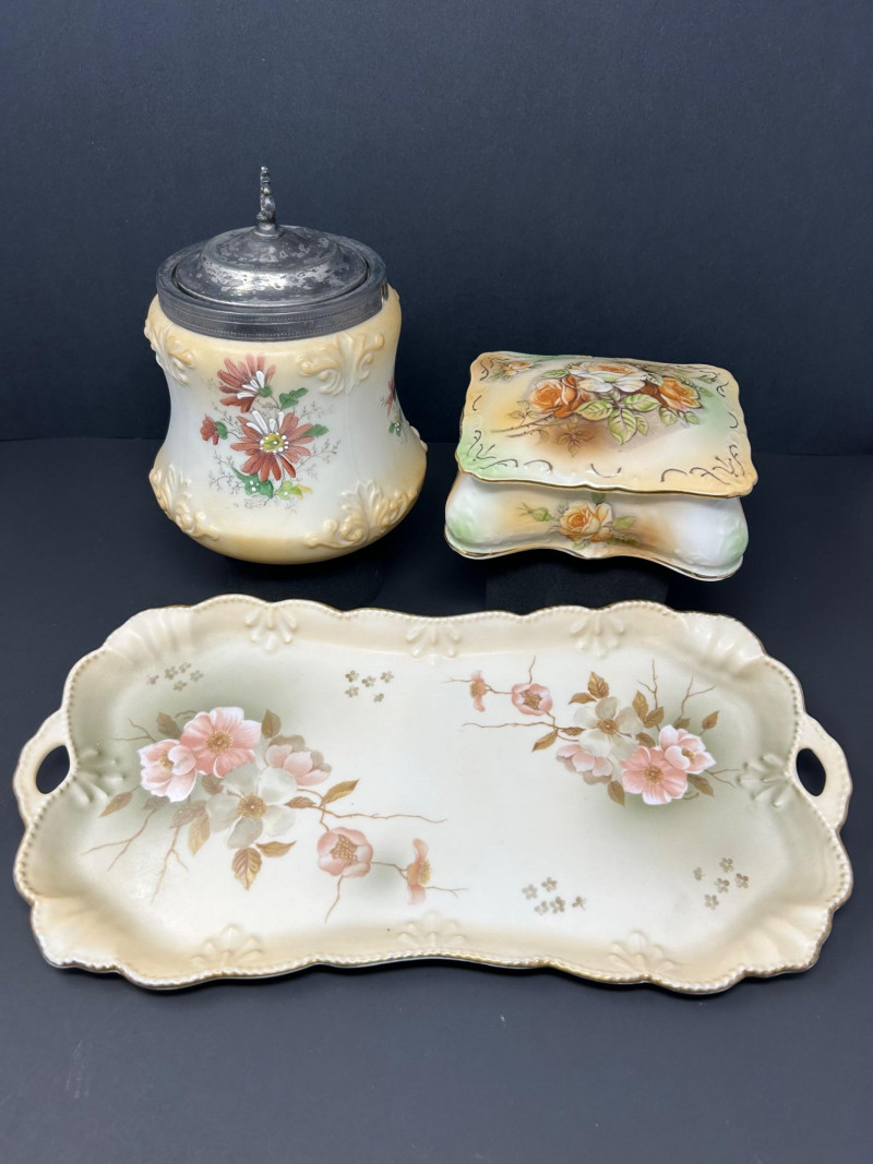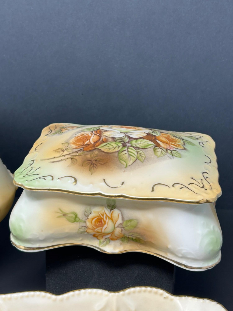 Lot # 98 - Vintage Porcelain Vanity Set, R.S. Prussia Style – Tray, Box and Jar