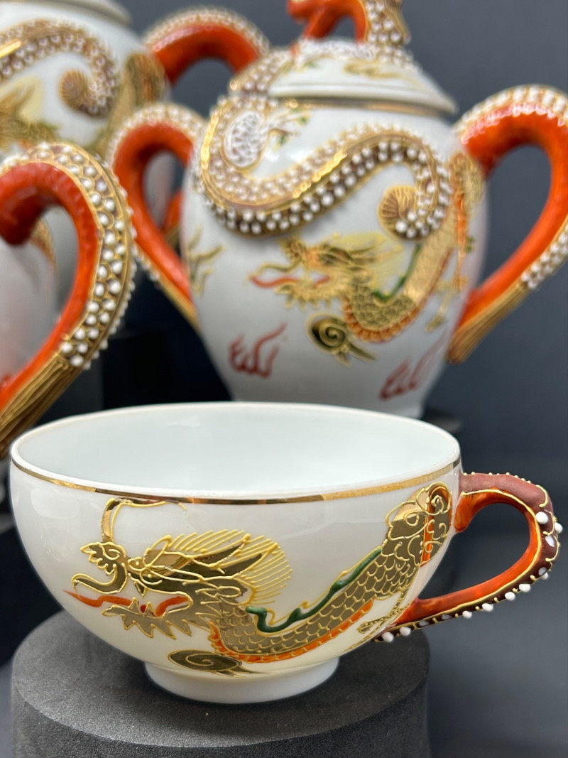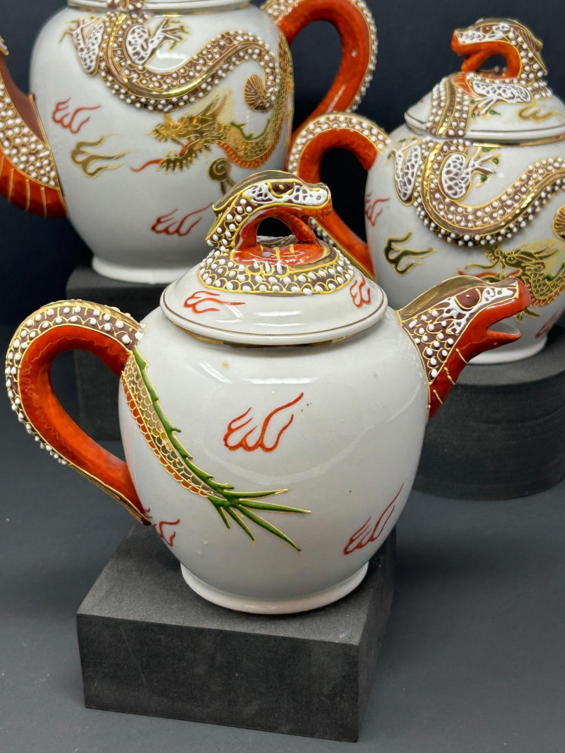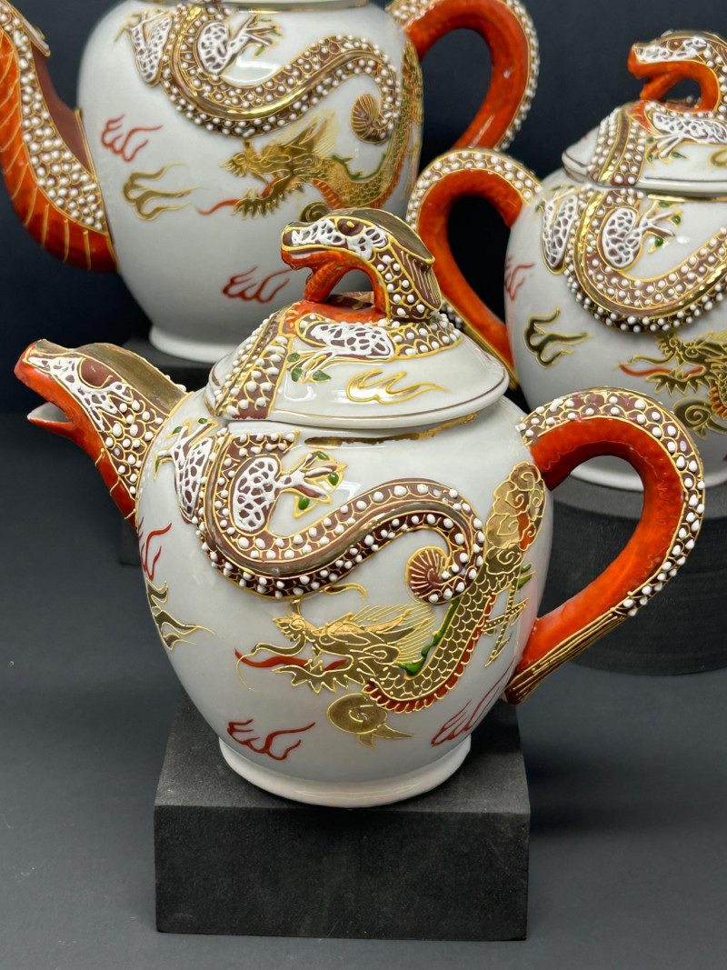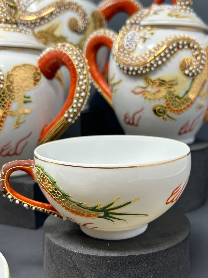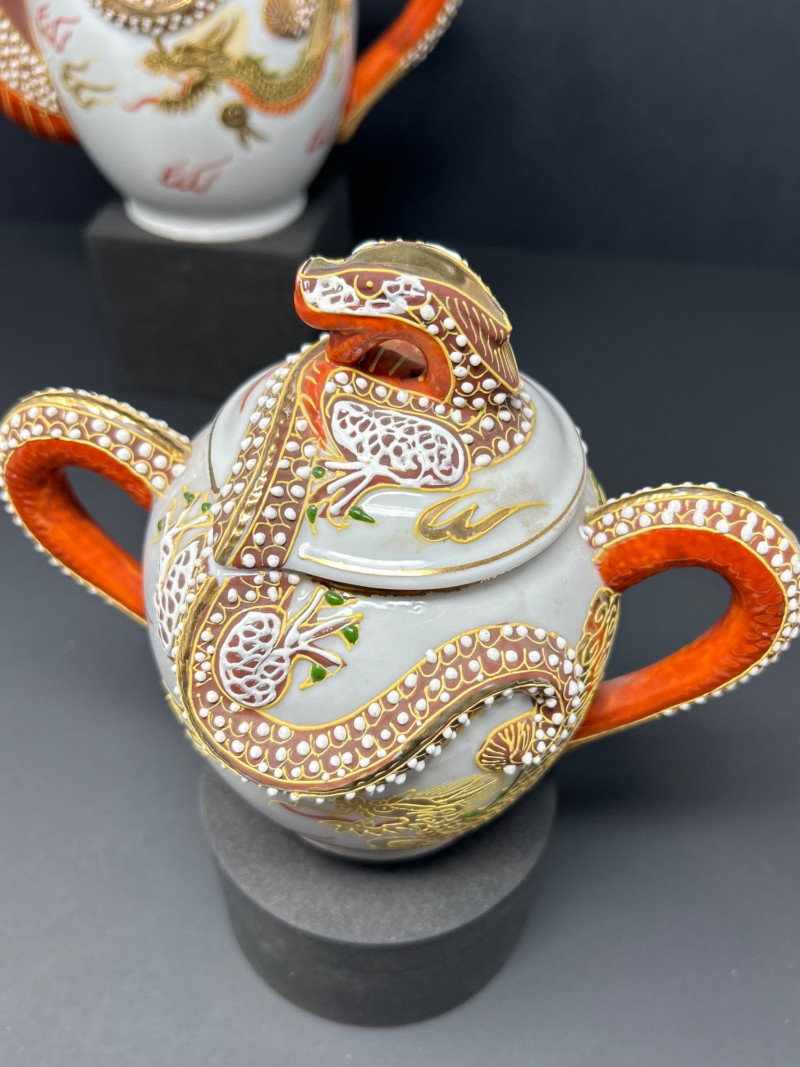Lot # 104 - Vintage Japanese Raised Dragon Moriage-Style Porcelain Tea Set
