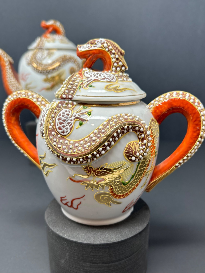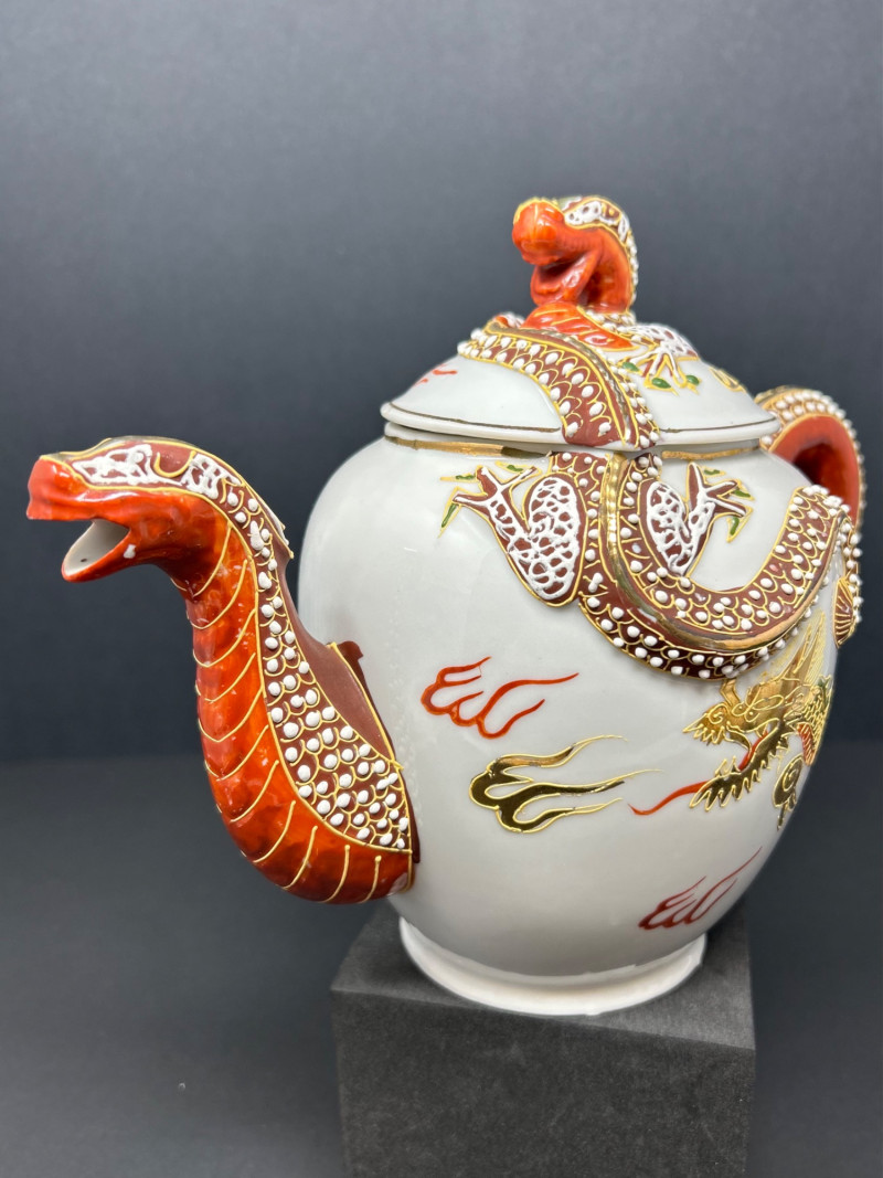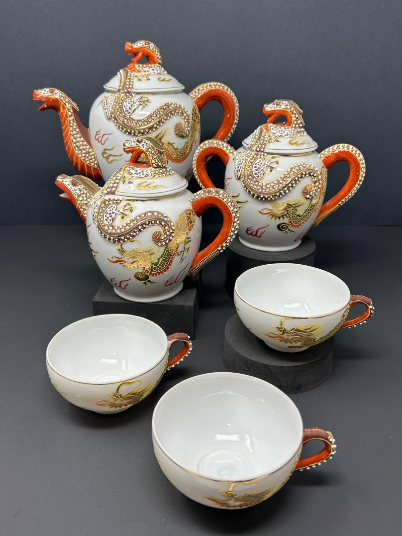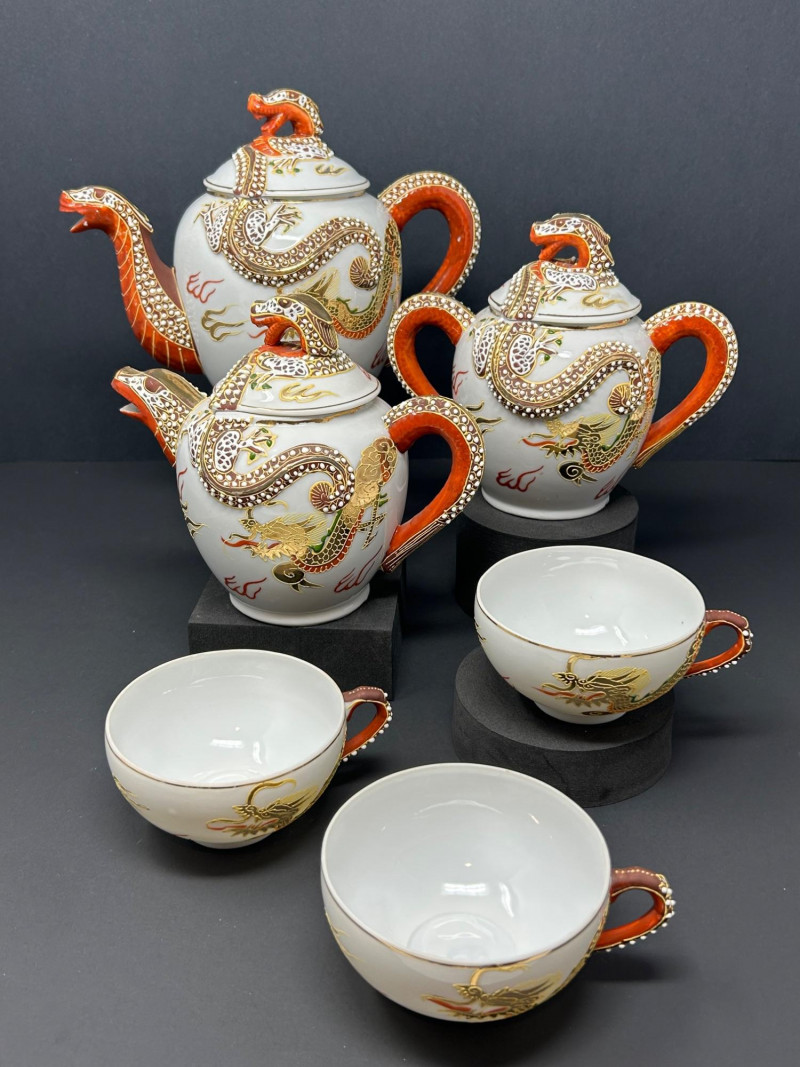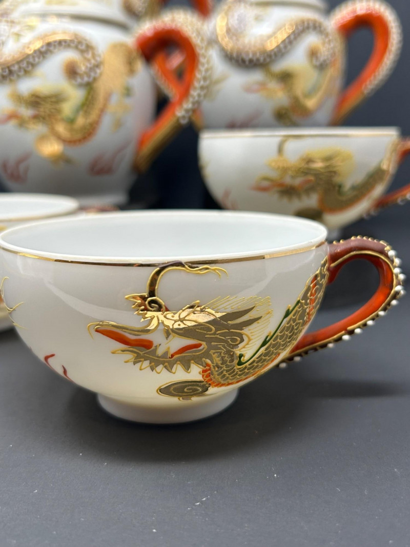 Lot # 104 - Vintage Japanese Raised Dragon Moriage-Style Porcelain Tea Set