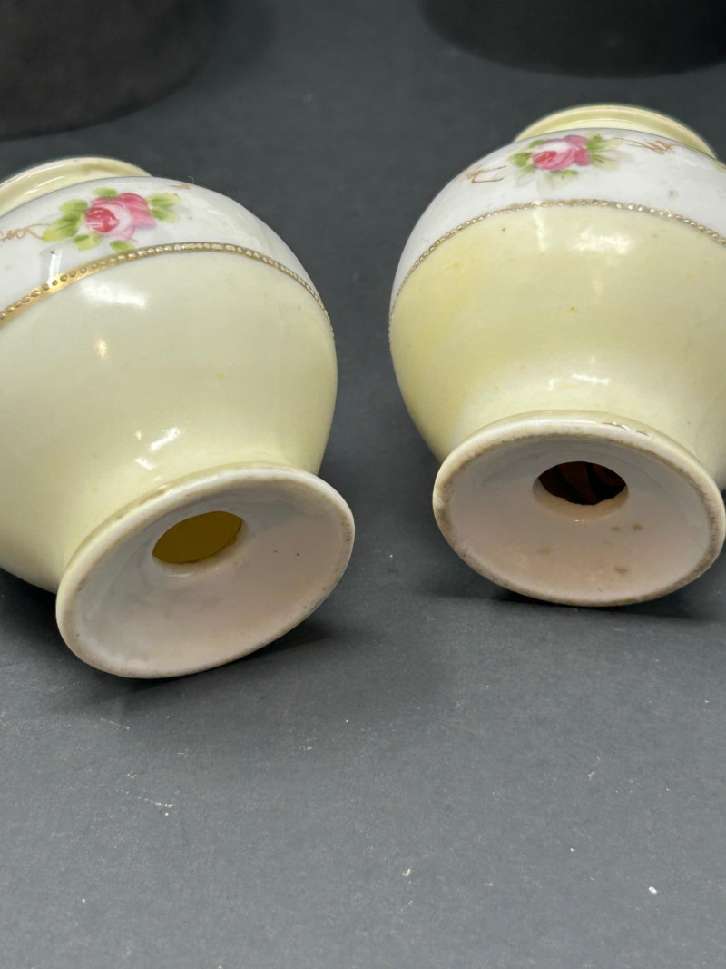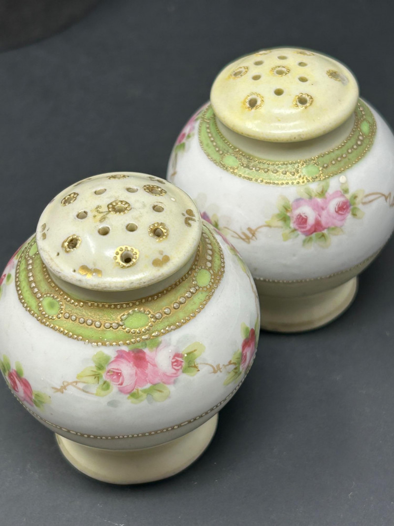 Attribution: Likely Nippon, based on form, glaze, floral decoration, and gilt detailing