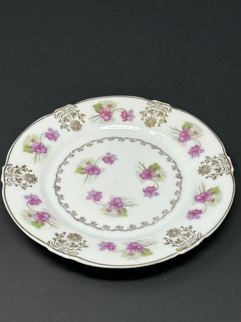 Decoration: Floral sprays with gilt accents and scalloped rim