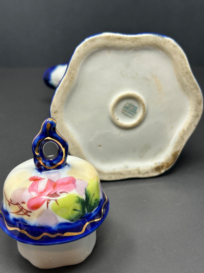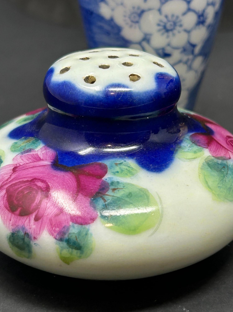 Vintage Blue & Floral Lidded Porcelain Shaker