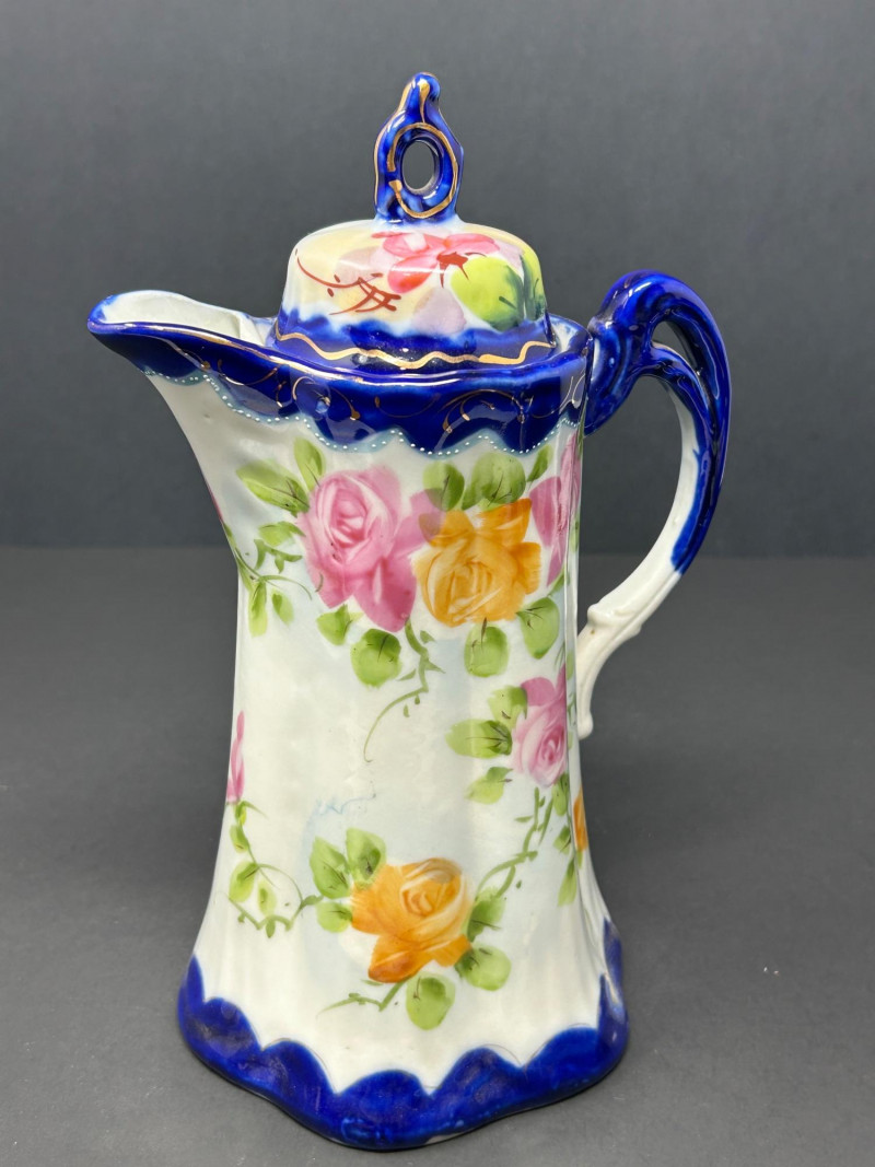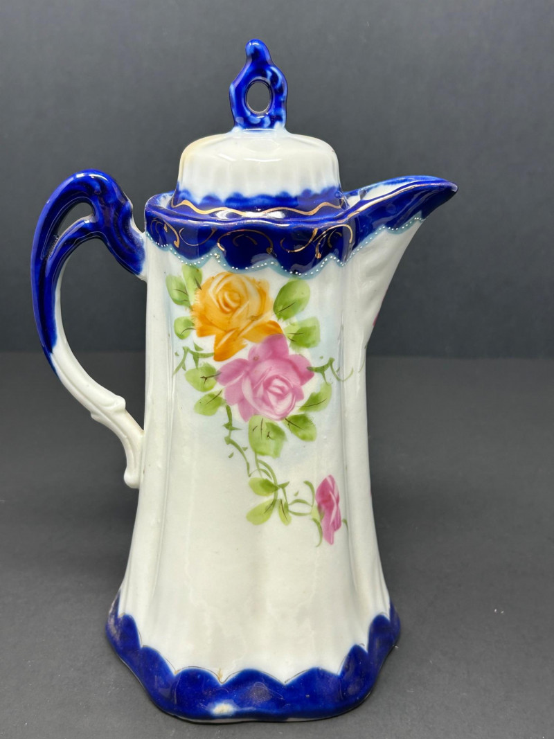 Lot # 115 - Vintage Floral Porcelain Lot – Blue Chocolate Pot, Pitcher & More
