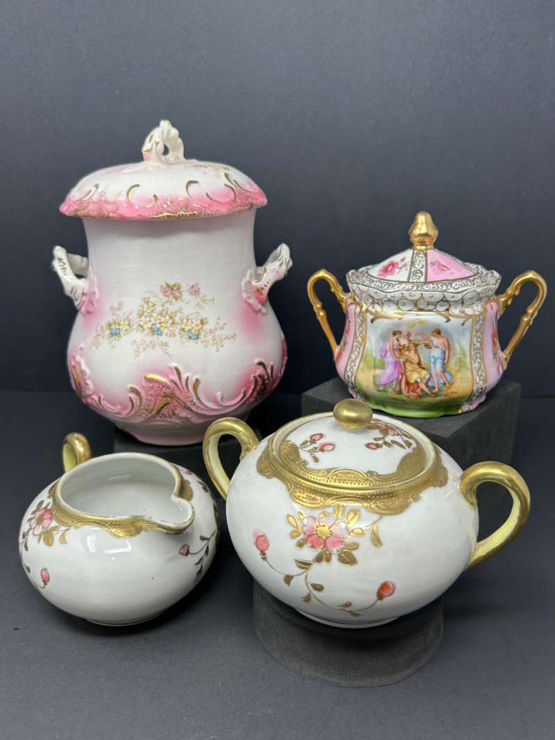 Lot # 108 - Elegant Vintage Porcelain Collection – Jar and Sugar-Creamer