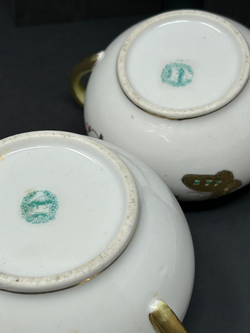 Japanese Hand-Painted Porcelain Sugar Bowl & Creamer (Matched Pair)