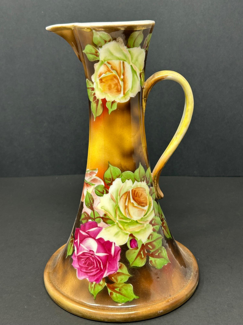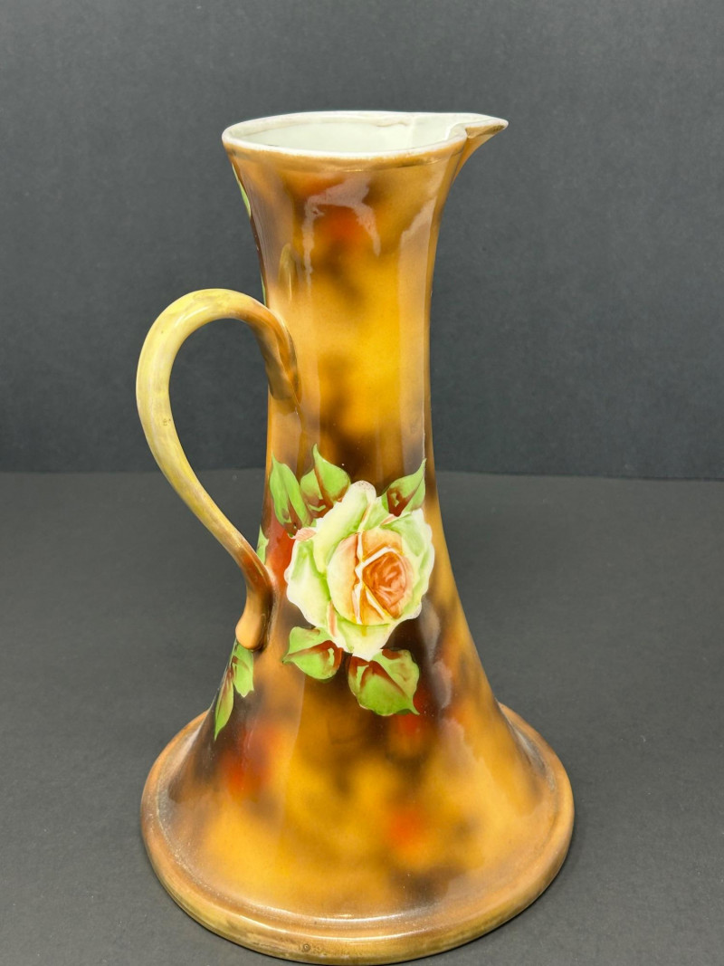 1. Hand-Painted Porcelain Nippon Rose Pitcher