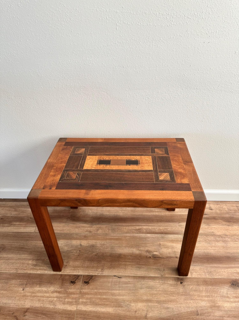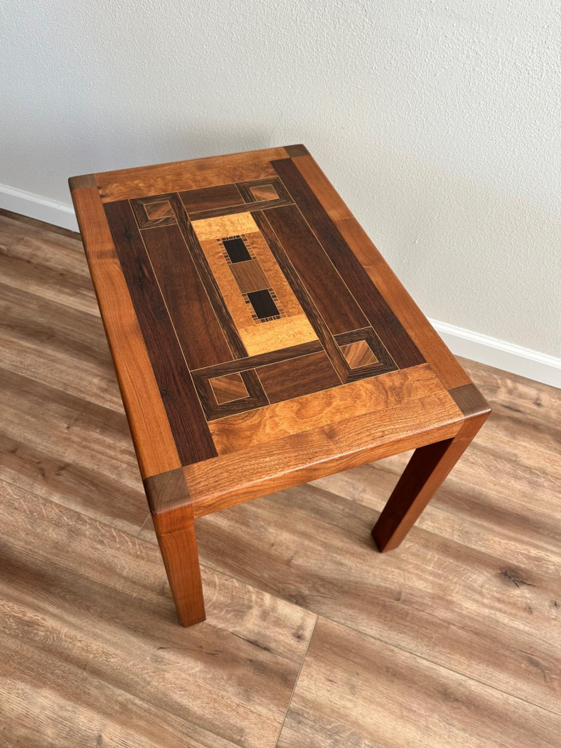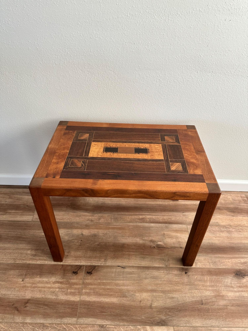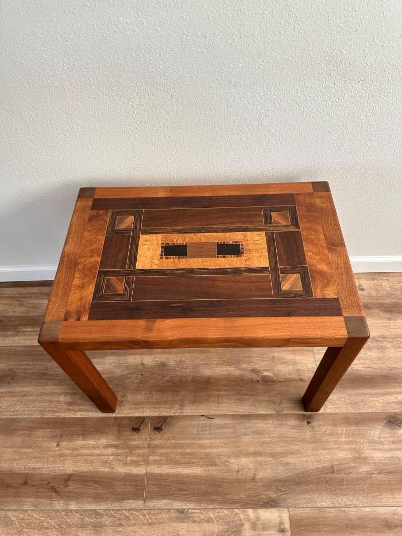 Lot # 7 - Solid Wood Geometric Marquetry Inlay Table with Dual Panel Design
