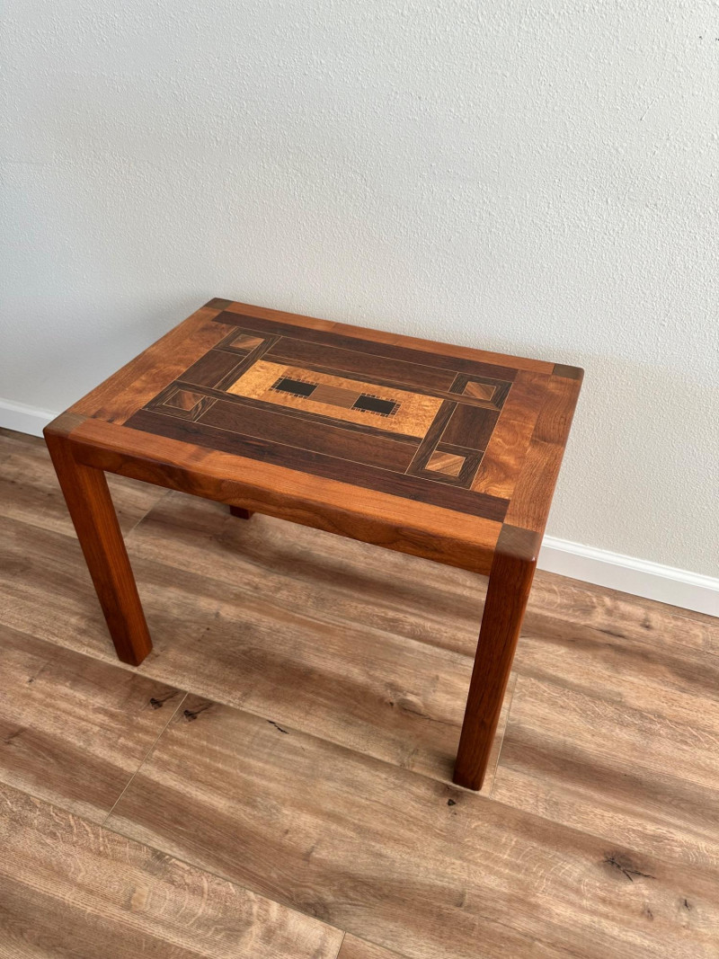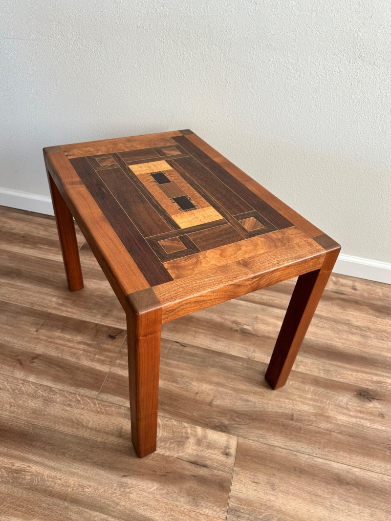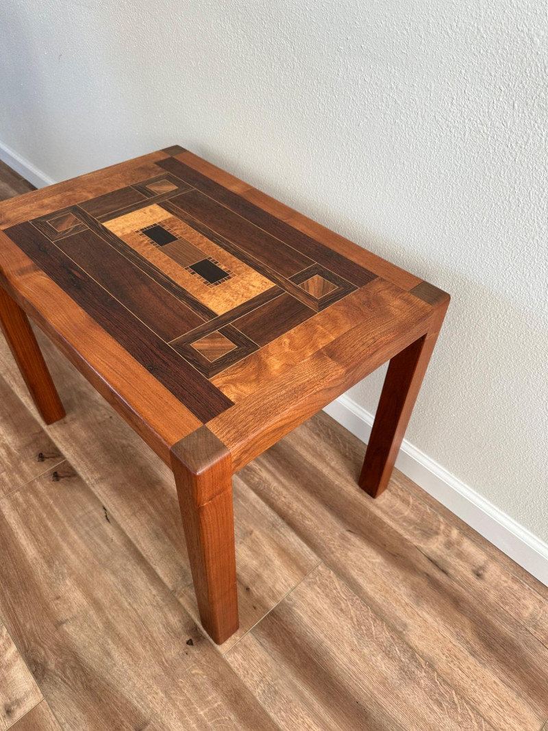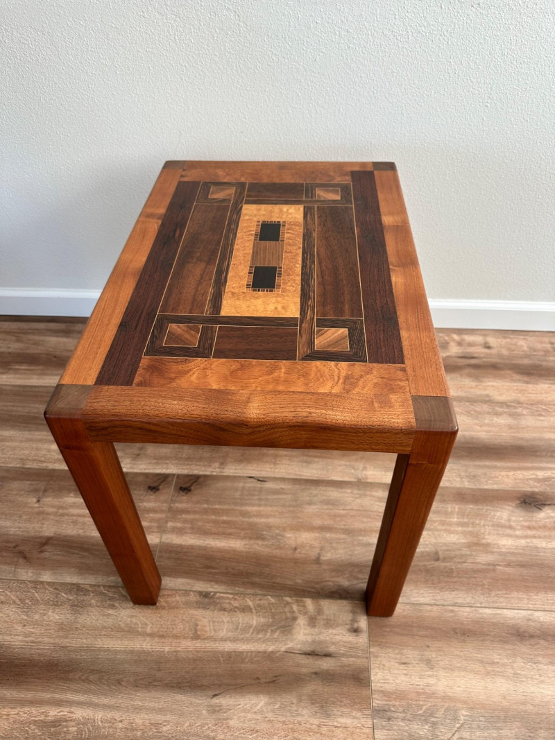 Lot # 7 - Solid Wood Geometric Marquetry Inlay Table with Dual Panel Design