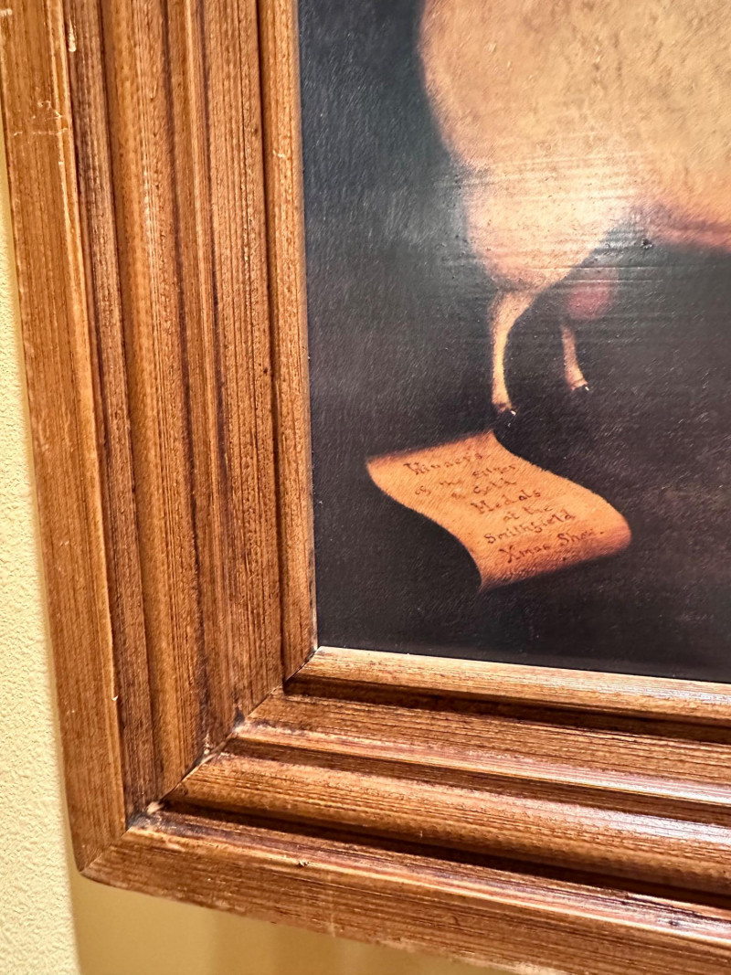 Lot # 4 - Sheep Sale Folk Art Print – Framed Rustic Farm Scene, 31″ × 23.5″