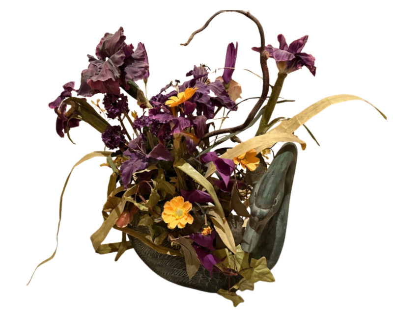 Lot # 10 - Toyo Swan Planter with Silk Floral Arrangement – Made in Korea