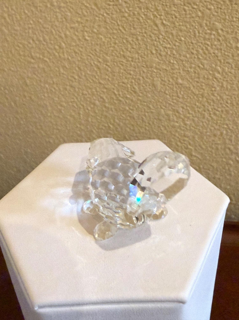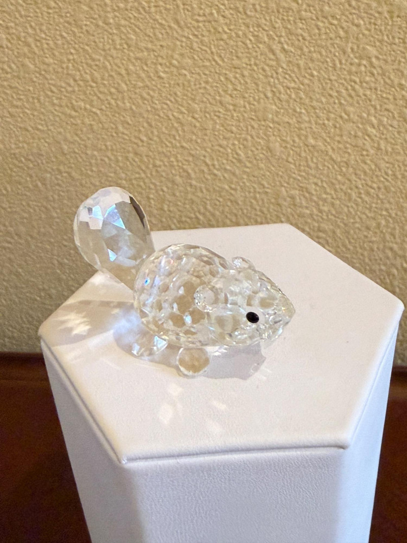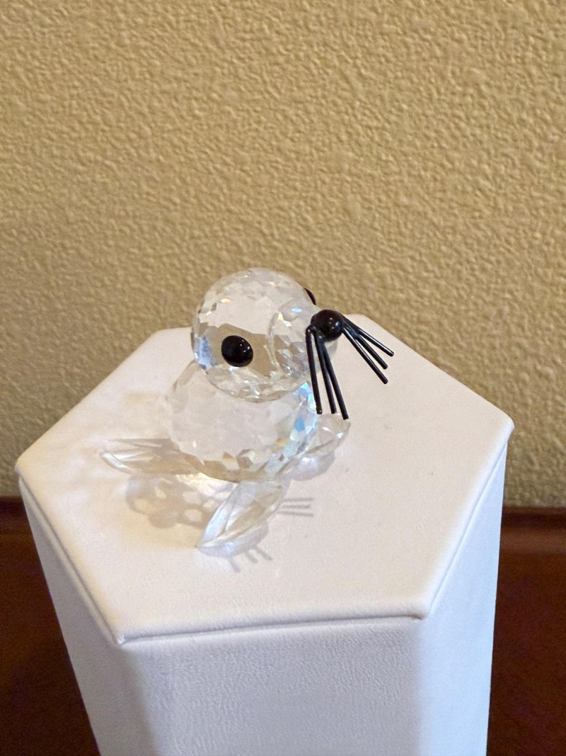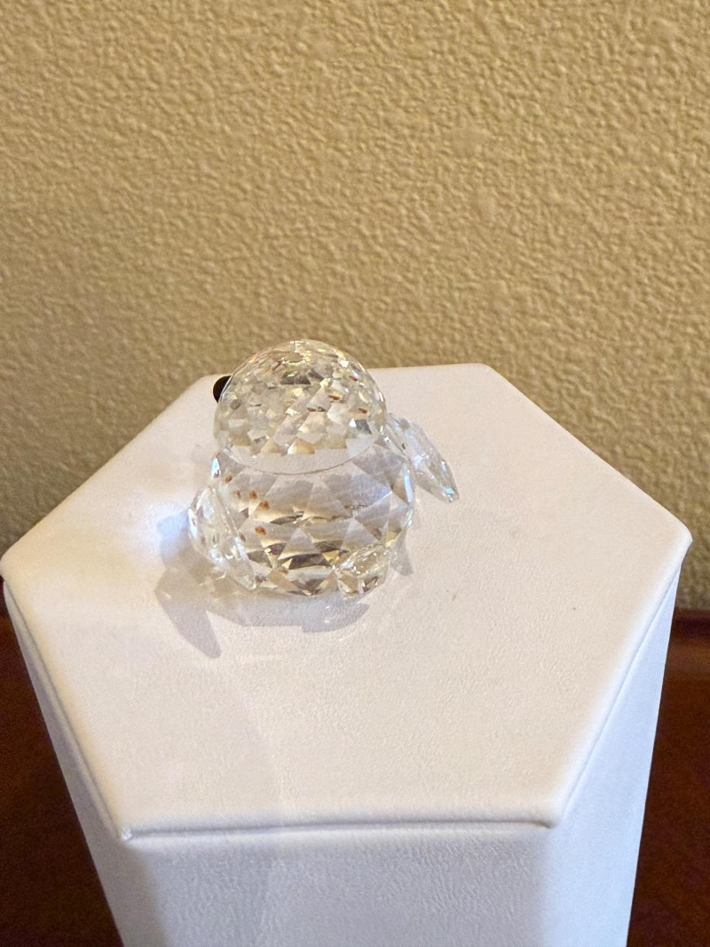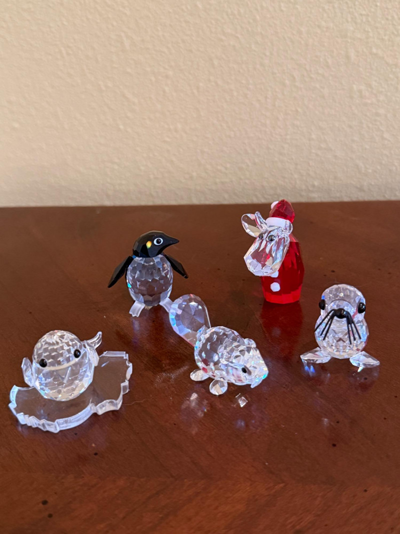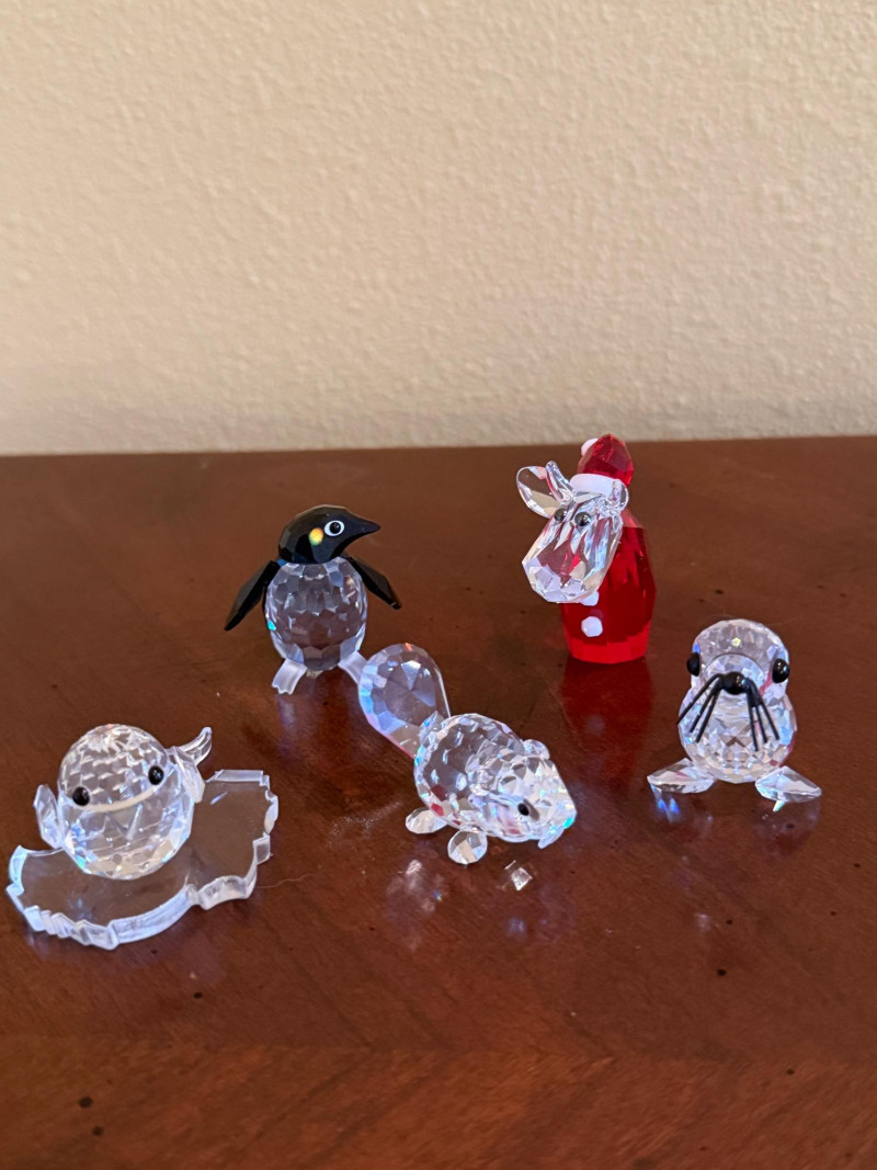 This charming lot features a collection of Swarovski crystal miniature animal figurines, beautifully crafted with the brand’s signature precision-cut facets that catch and reflect light brilliantly. The assortment includes a mix of whimsical wildlife and seasonal-themed pieces, each showcasing Swarovski’s renowned clarity, sparkle, and attention to detail. Perfect for collectors, display cabinets, holiday décor, or as thoughtful gifts, these miniatures add elegance and personality to any space despite their petite size. Maker: Swarovski Material: Faceted clear crystal with colored and black accent elements Collection Includes (assorted): Penguin Seal Walrus Mouse / small rodent Reindeer wearing a Santa hat (holiday-themed piece) Approximate Size: Each measures approx. 1"–1.5" tall Finish: High-polish faceted crystal with reflective sparkle Style: Miniature animal figurines / crystal collectibles Quantity: Group lot as shown in photosDetails: