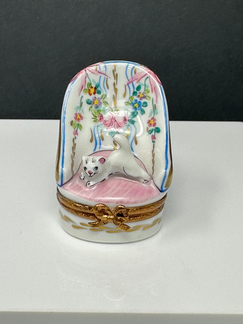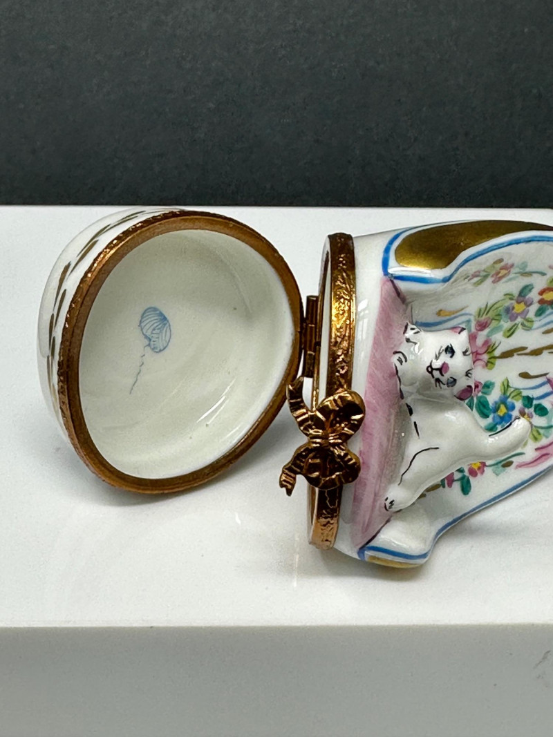 Limoges France Reclining Cat Trinket Box